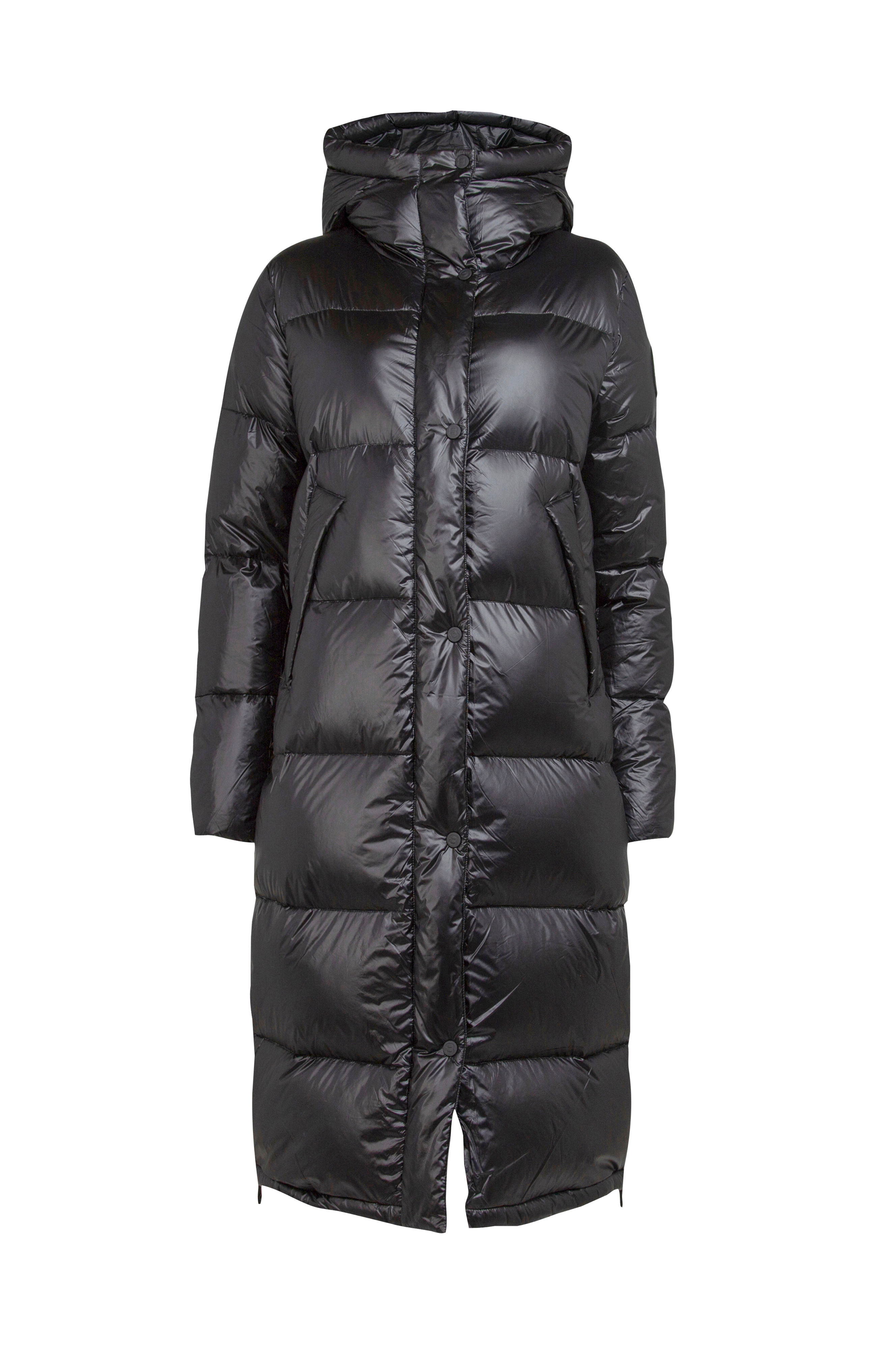 Pitkä puffer-tyylinen untuvatakki, jossa oversize-istuvuus. Päällyskangas ja vuori erittäin kevyttä polyamidia, jossa on kiiltävä ja hohtava pinta. Untuvatäyte on ihanan lämmin ja erittäin kevyt.