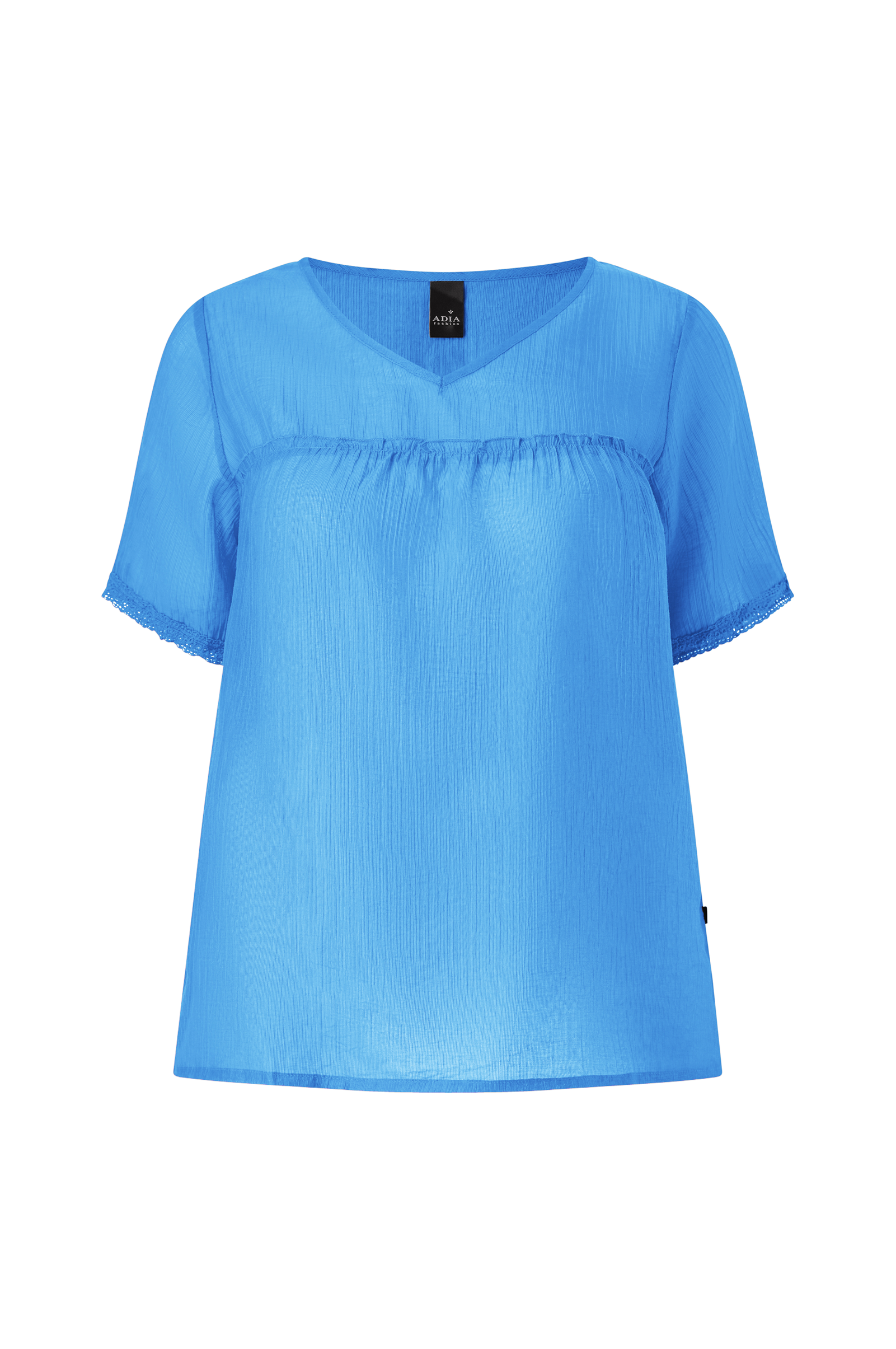 • Pusero rypytetystä, läpikuultavasta materiaalista• V-muotoinen pääntie• Lyhyet hihat pitsillä manseteilla• Plus-koot