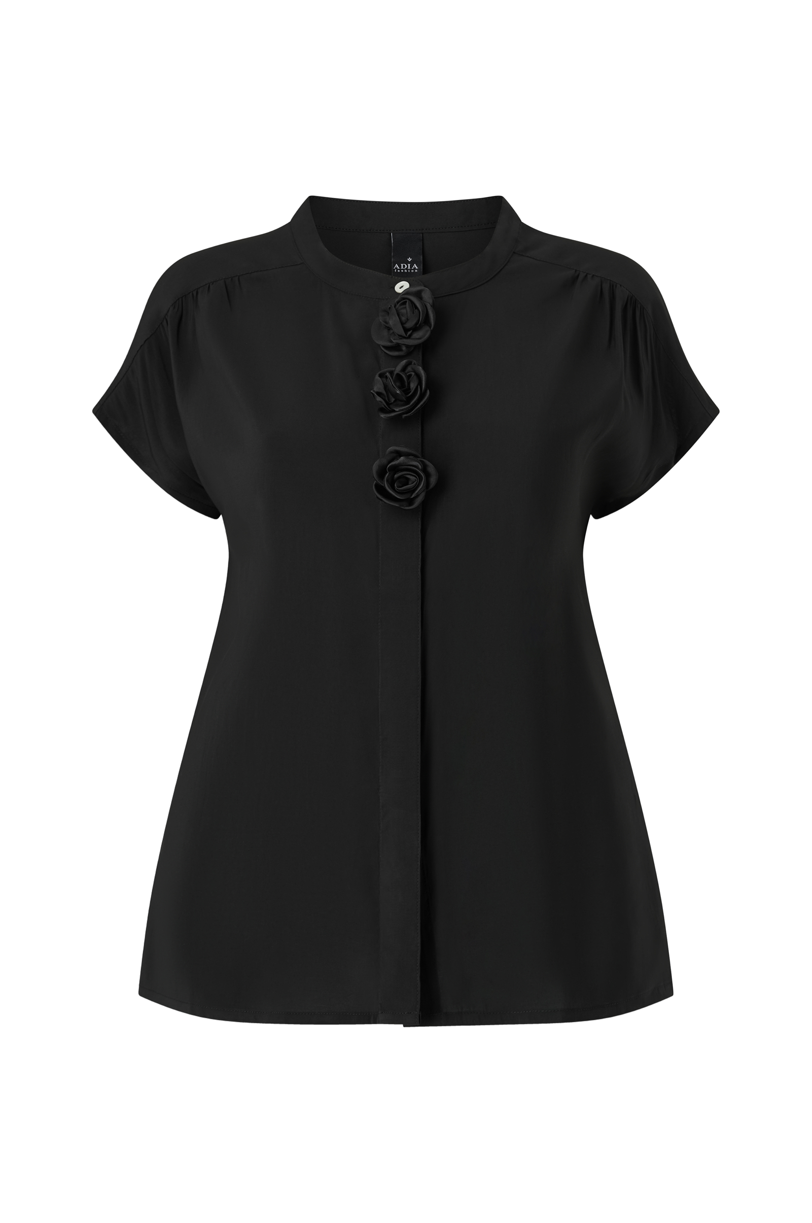 • Pusero pyöreällä kaula-aukolla• Lyhyet lyhyt hihat• Kätketty nappietupuoli edessä koristeellisilla kukilla• Plus-koot