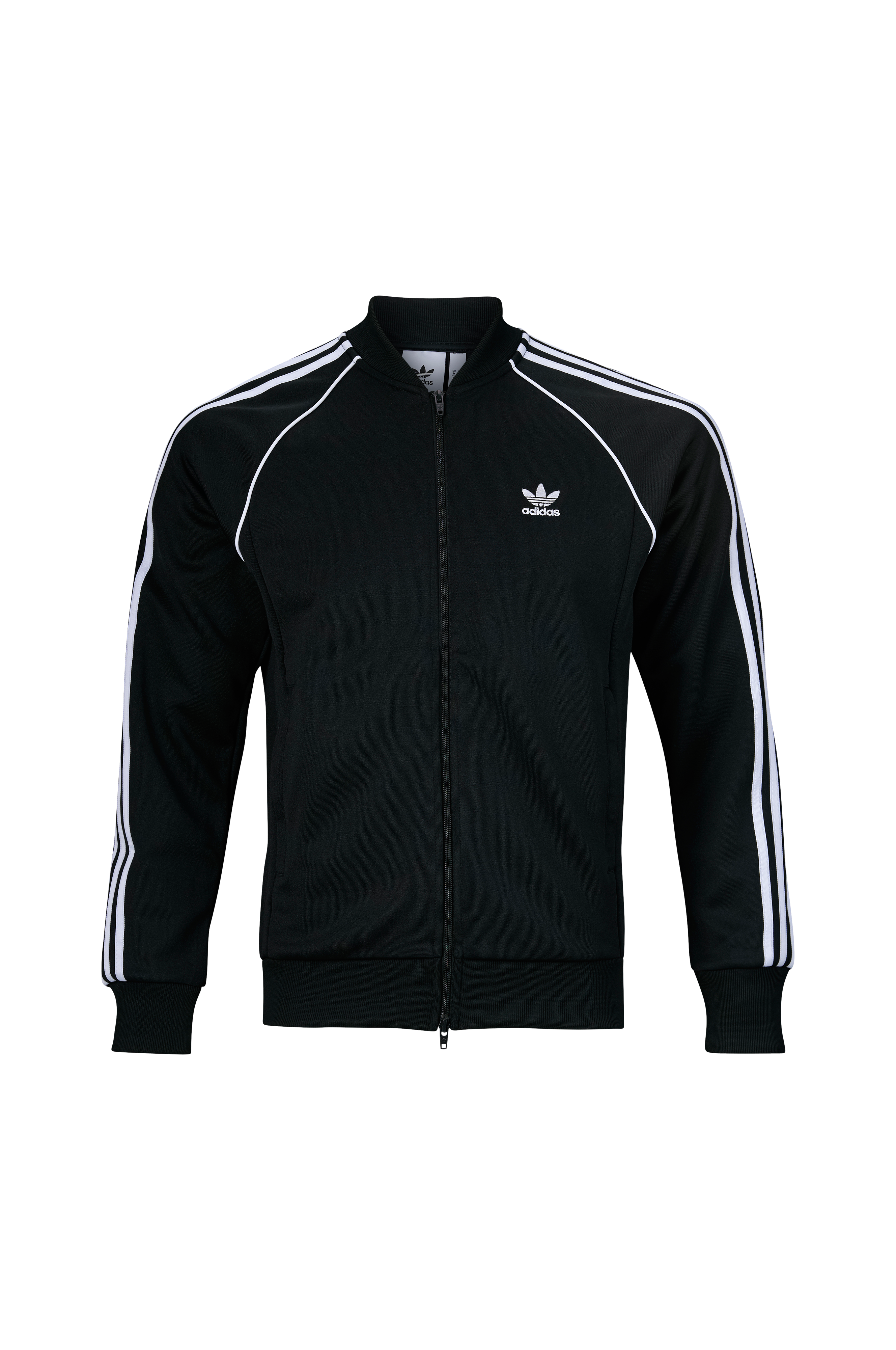 Adidas Originals SST Track Jacket -treenitakki. Klassinen treenitakki, jossa kontrastiväriset 3-stripes-raidat hihoissa ja pieni kirjailtu Trefoil-logo rinnassa. Joustinneuloskaulus ja kaksisuuntainen vetoketju. Raglanhihat. Resori hihansuissa ja helmassa. Pituus n. 71 cm koossa M.
