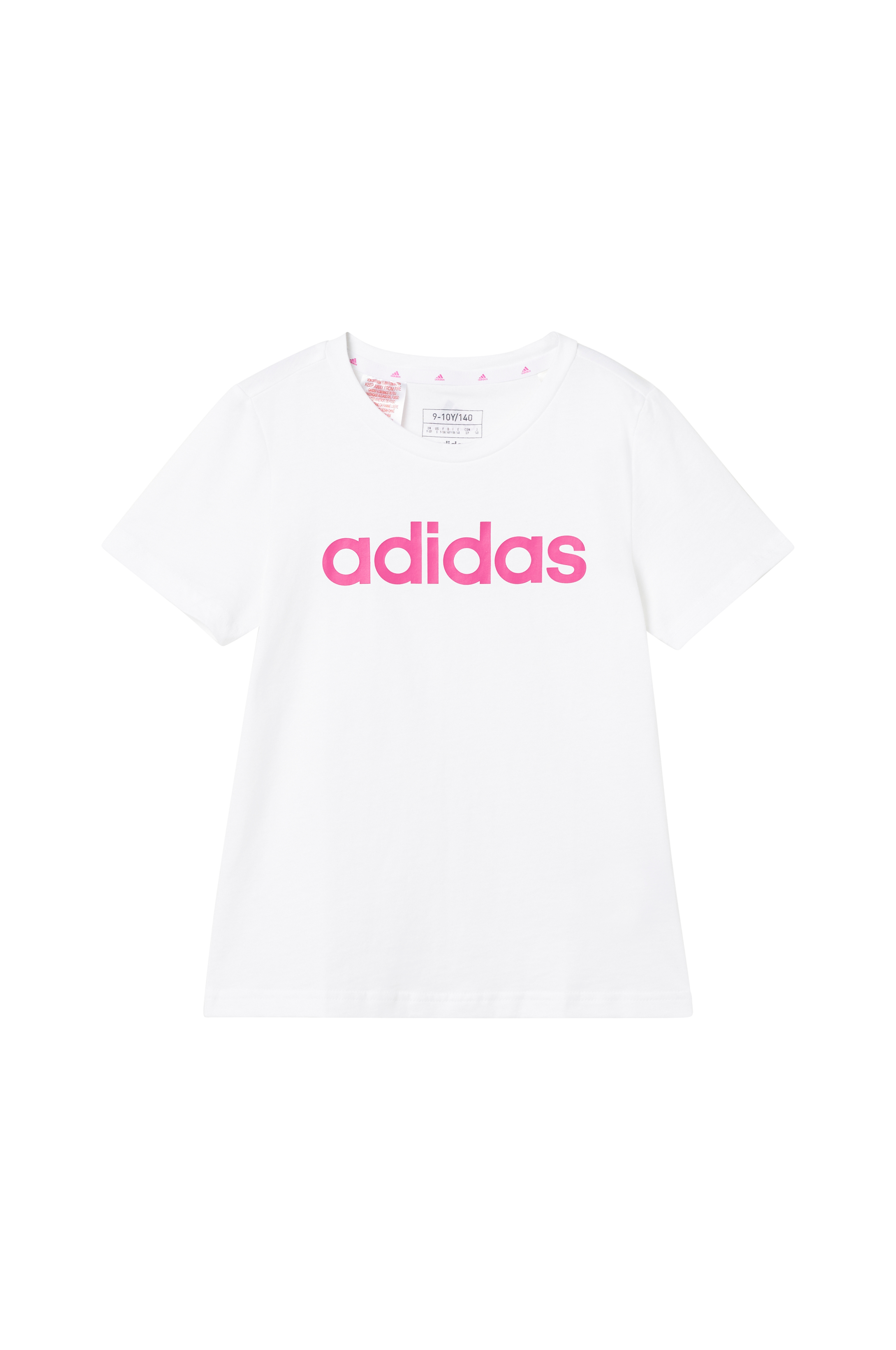 Lyhythihainen pusero, jossa pyöreä pääntie ja painettu logo edessä.