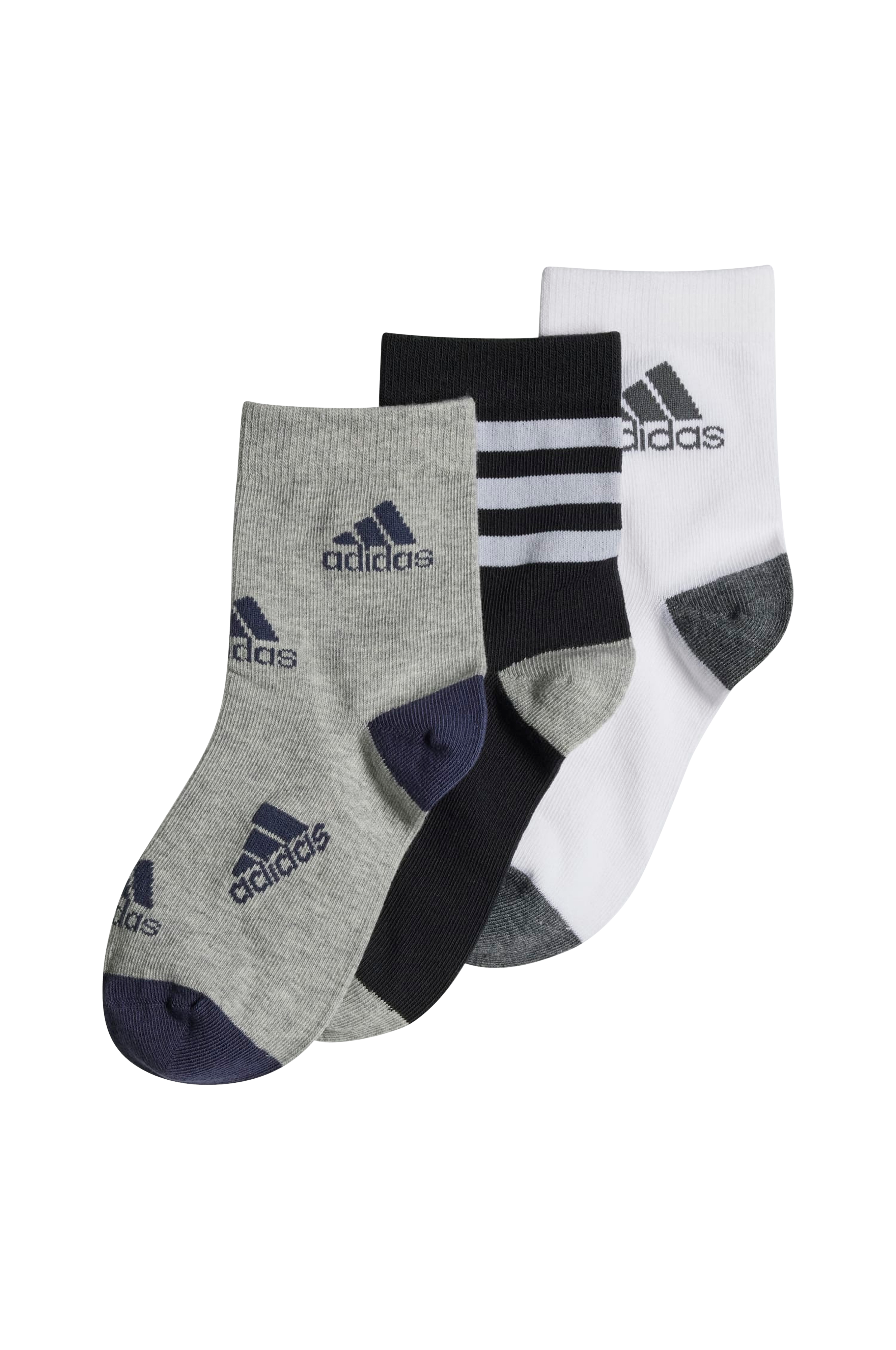 Kolme eriväristä sukkaparia. Keskikorkea varsi.