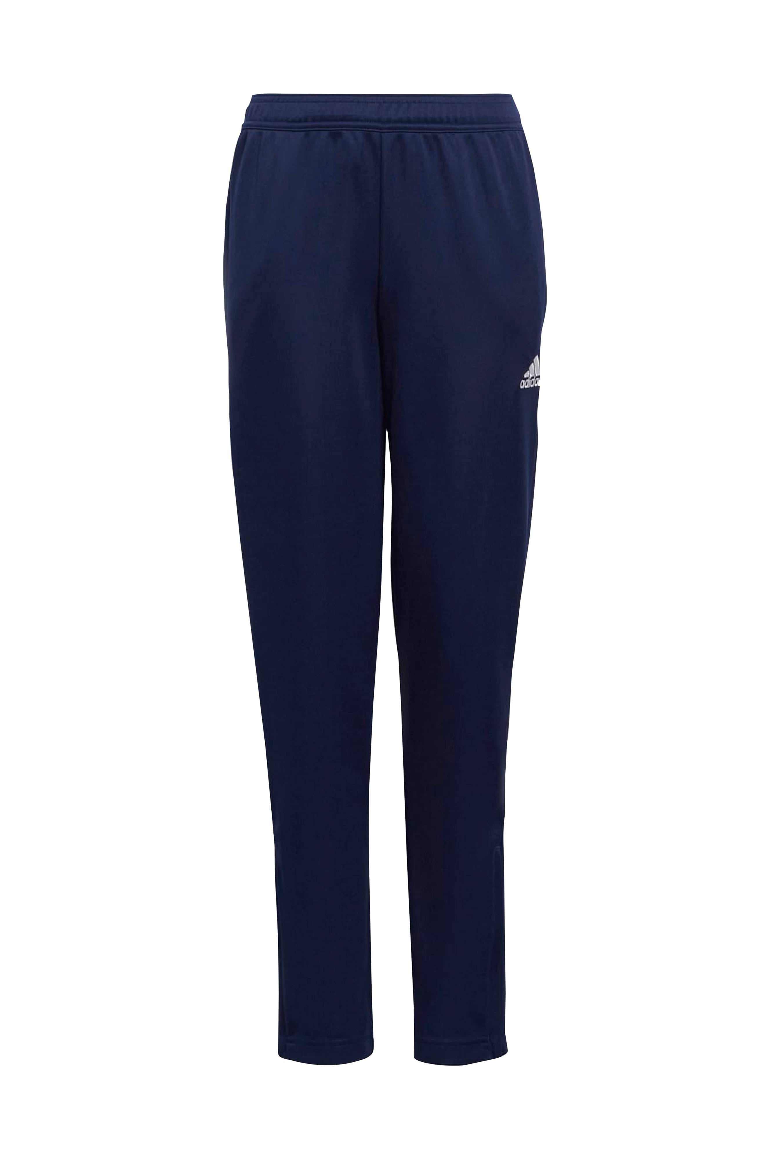 Treenihousut jalkapalloon. Kapea istuvuus ja keskikorkea vyötärö. Trikoota, jossa kosteutta imevä AEROREADY. Joustava vyötärö, jonka sisäpuolella nyöri. Sivutaskut ja lahkeensuissa vetoketjut.