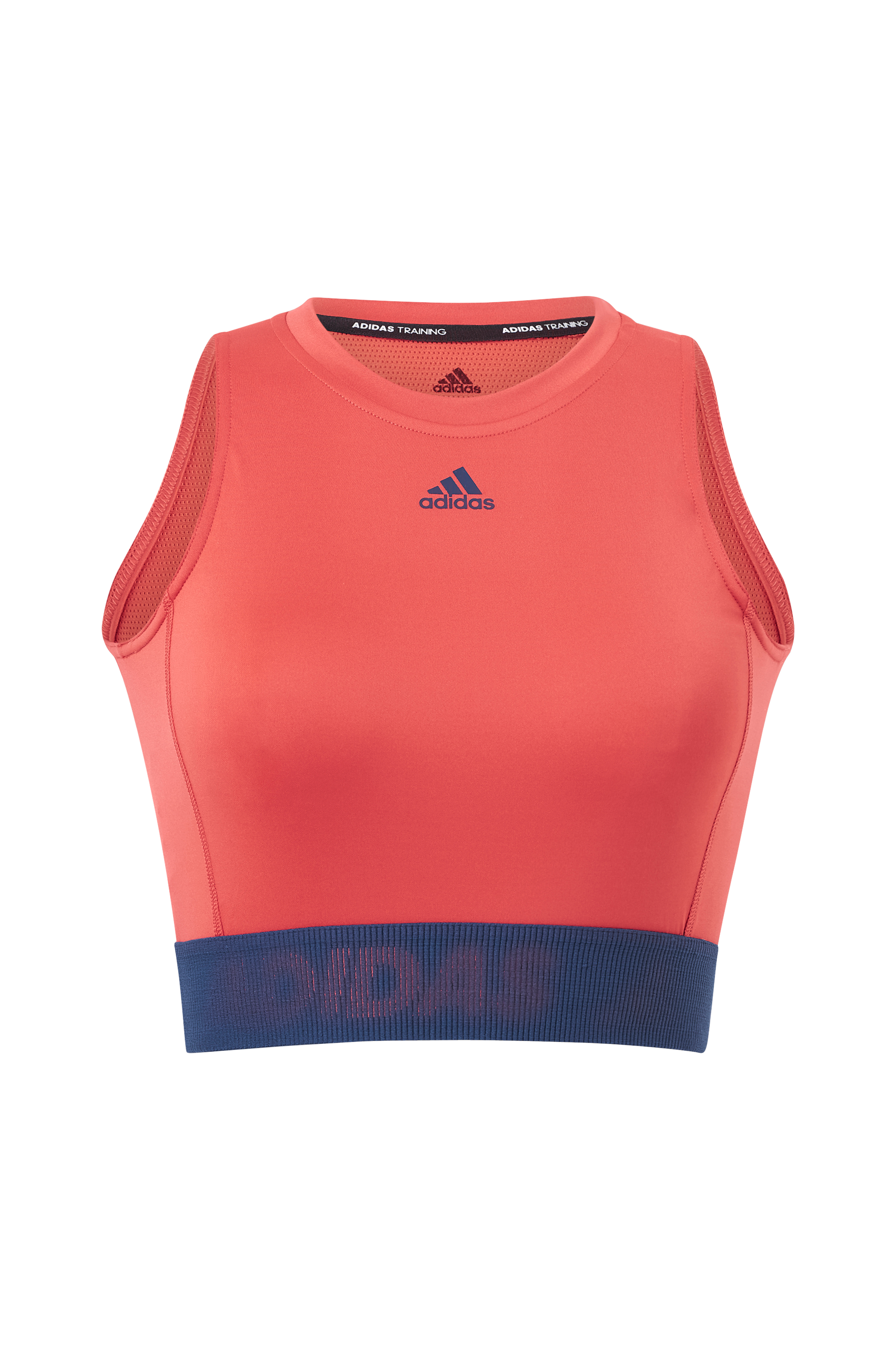 Treenitoppi pehmeää ja joustavaa materiaalia, jossa kosteutta imevä AEROREADY. Vartalonmyötäinen istuvuus. Verkkopaneeli selässä ja leveä, joustava kuminauha alareunassa.
