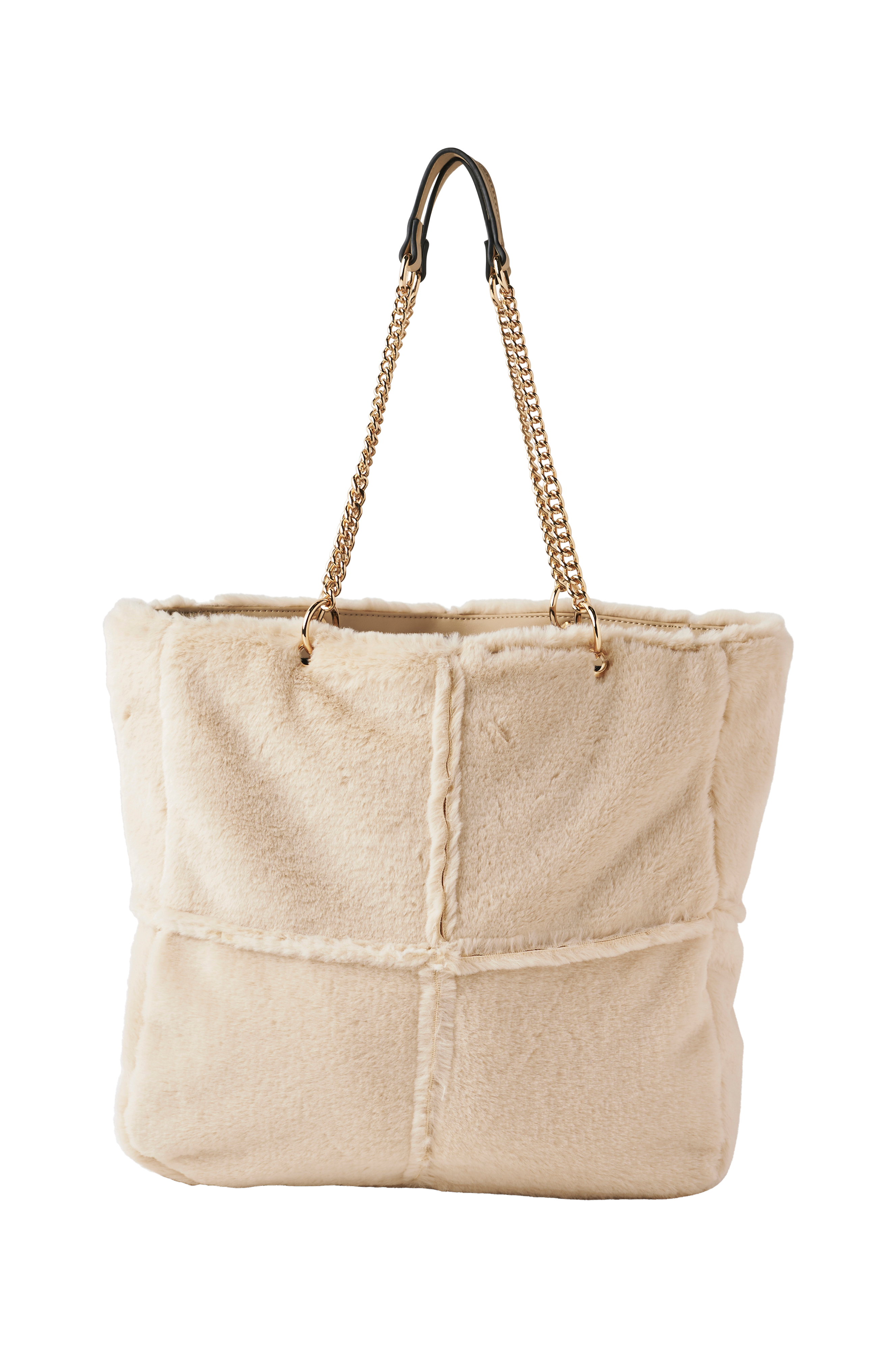 • Tilava laukku pehmeästä tekoturkiksesta• Lukko nepparilla• Kullanväriset olkaketjut• Osio vetoketjulla sisäpuolella• Kaksi avointa paikkaa sisäpuolella• Tekstiilivuori• Irrotettava lompakko• Mitat: B 32 x H 33 x D 15 cm