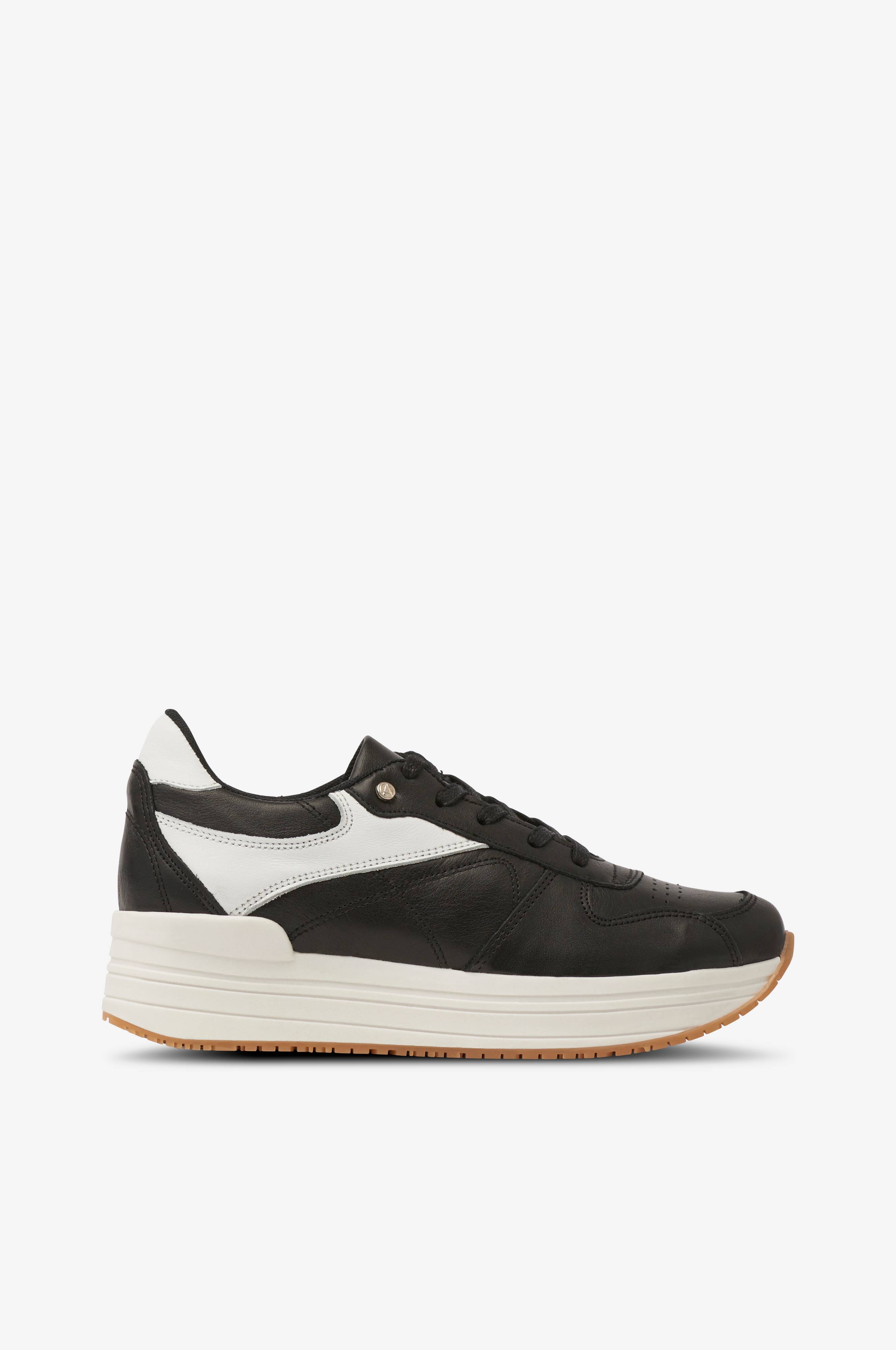 Agnes Cecilia Flat Form -tennarit, joissa sporttinen malli. Laadukasta nahkaa ja valkoiset yksityiskohdat. Korkea, trendikäs pohja ja pehmeä nahkasisäpohja. Pohjan korkeus takaa n. 3,5 cm.