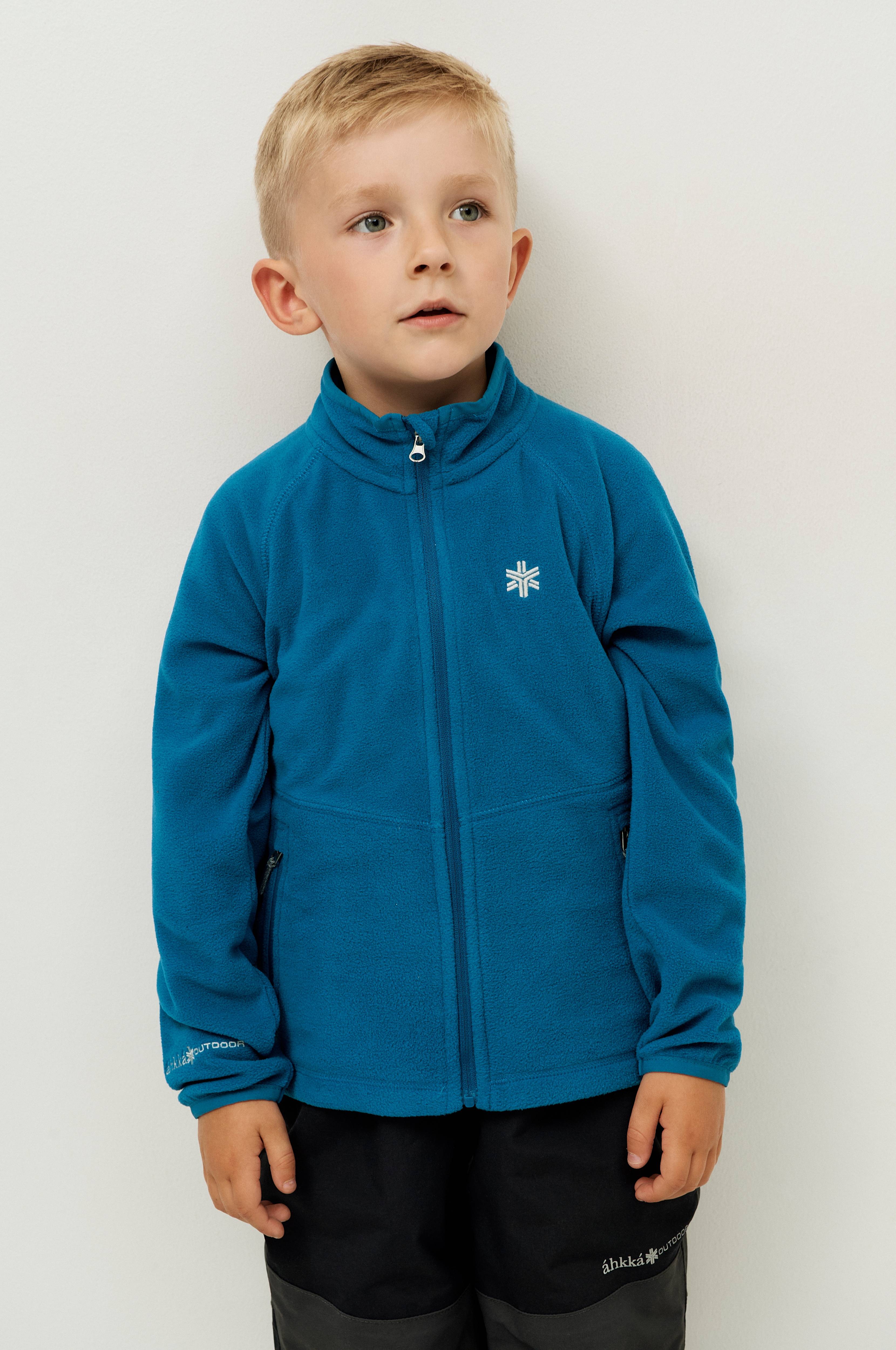 Joustava Áhkká-fleecetakki lämmintä ja kosteutta siirtävää mikrofleeceä. Pehmeä sisäpinta. Korkea kaulus, täyspitkä vetoketju ja leukasuoja. Kaksi vetoketjutaskua. Kirjailtu logo rinnassa. 2. kerroksen vaate.