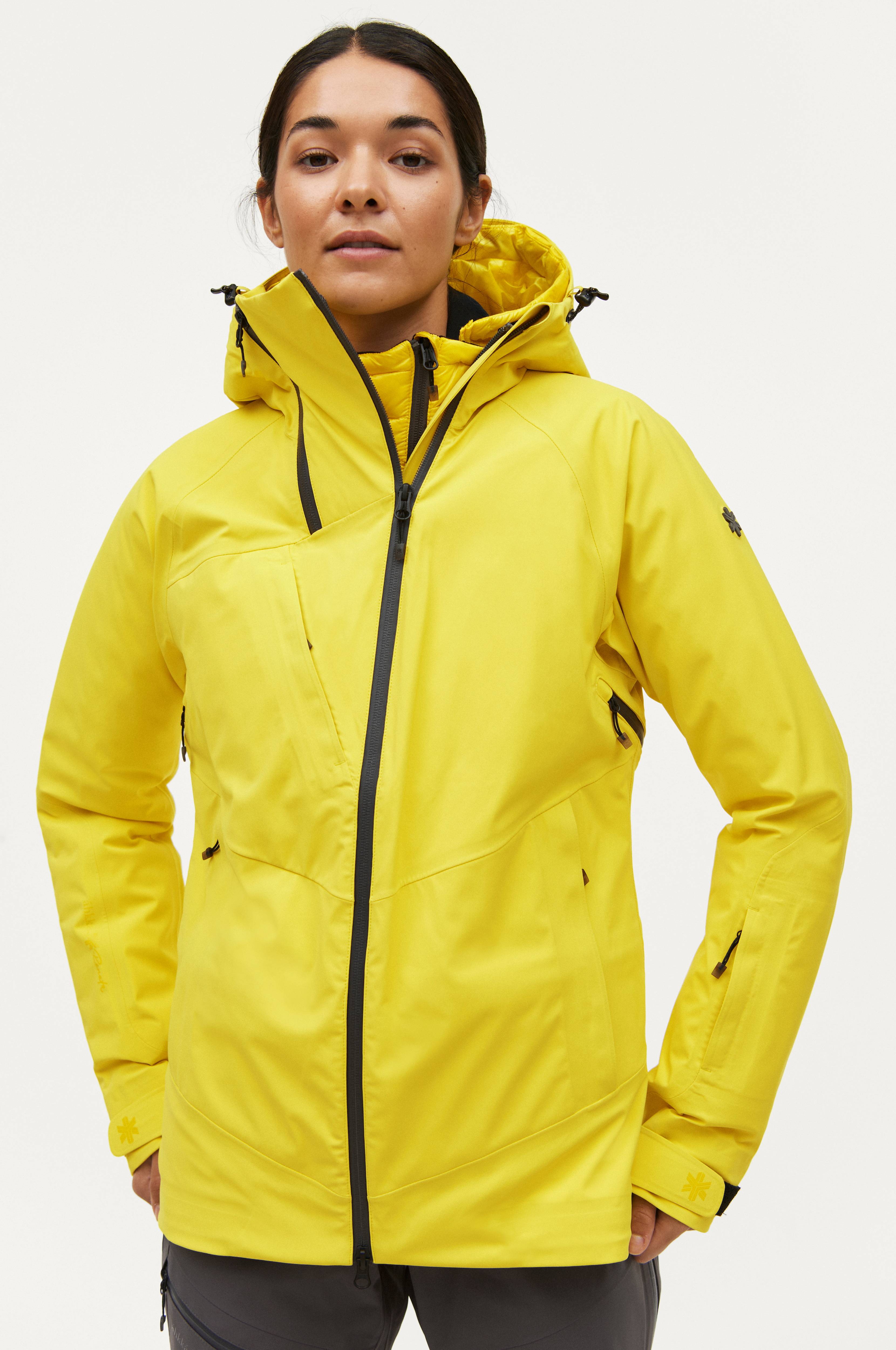 Paksu, kahteen suuntaan joustavasta materiaalista valmistettu Áhkká by Renata -kuoritakki. Sopii kaikkiin ulkoaktiviteetteihin. Käytetään 3. kerroksen vaatteena eli päällystakkina. Valitse alle puettavat kerrokset aktiviteetin ja sään mukaan, niin olet aina oikein pukeutunut. Insulation Down Jacket AbR -untuvatakki (tuotenumero 7013485) voidaan kiinnittää kuoritakin alle lämmittäväksi kerrokseksi.