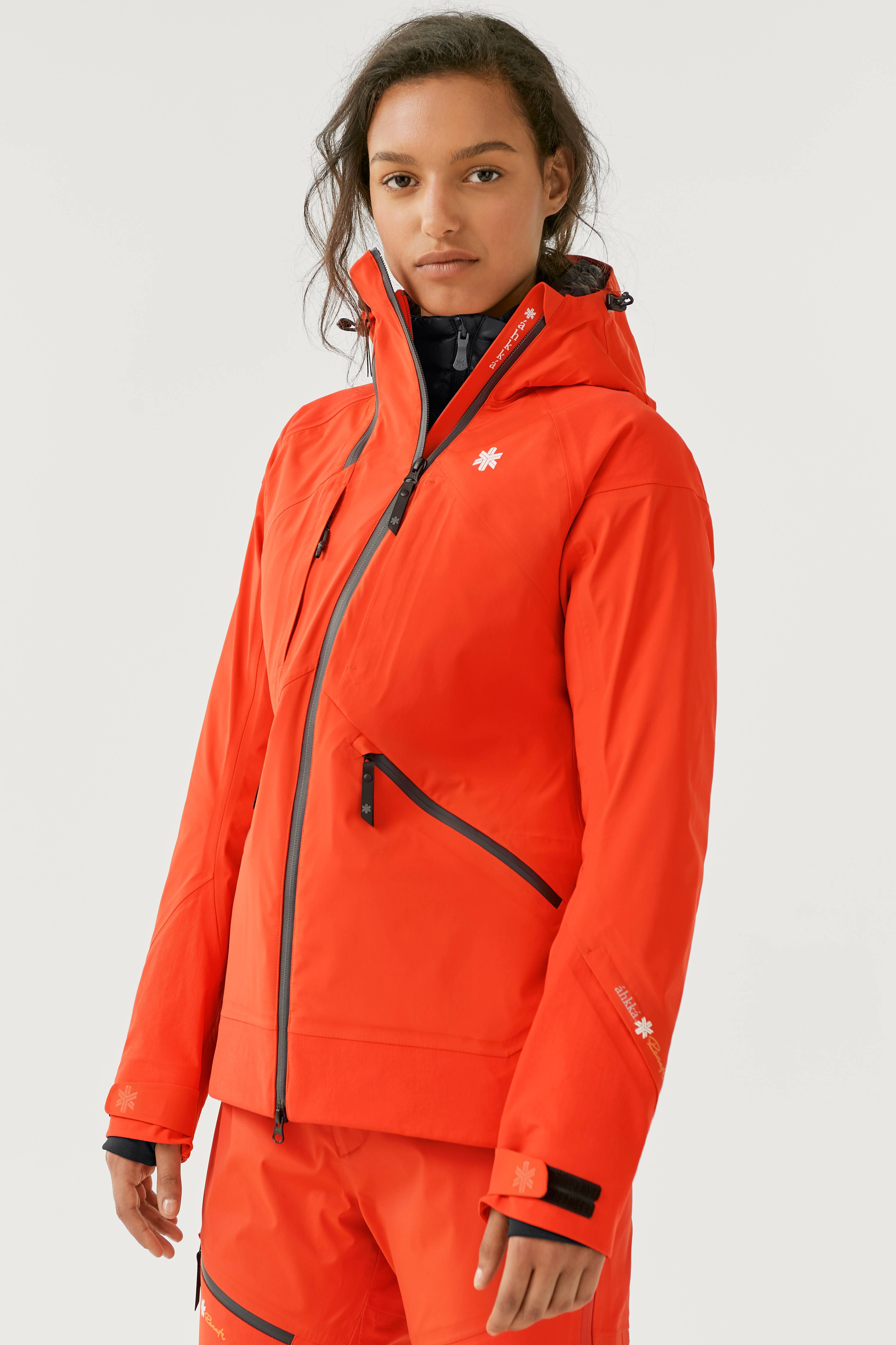 Áhkká by Renata -kuoritakki on paksu, kahteen suuntaan joustavasta materiaalista valmistettu kuoritakki, jossa kaikki tarvittavat toiminnot. Se sopii kaikkiin ulkoaktiviteetteihin ja sitä voi käyttää pitkään. Kuoritakkia käytetään 3. kerroksen vaatteena eli päällystakkina. Valitse alle puettavat kerrokset aktiviteetin ja sään mukaan, niin olet aina oikein pukeutunut. Light Weight Down Jkt Renata -untuvatakki (tuotenumero 7009103) voidaan kiinnittää kuoritakin alle lämmittäväksi kerrokseksi.