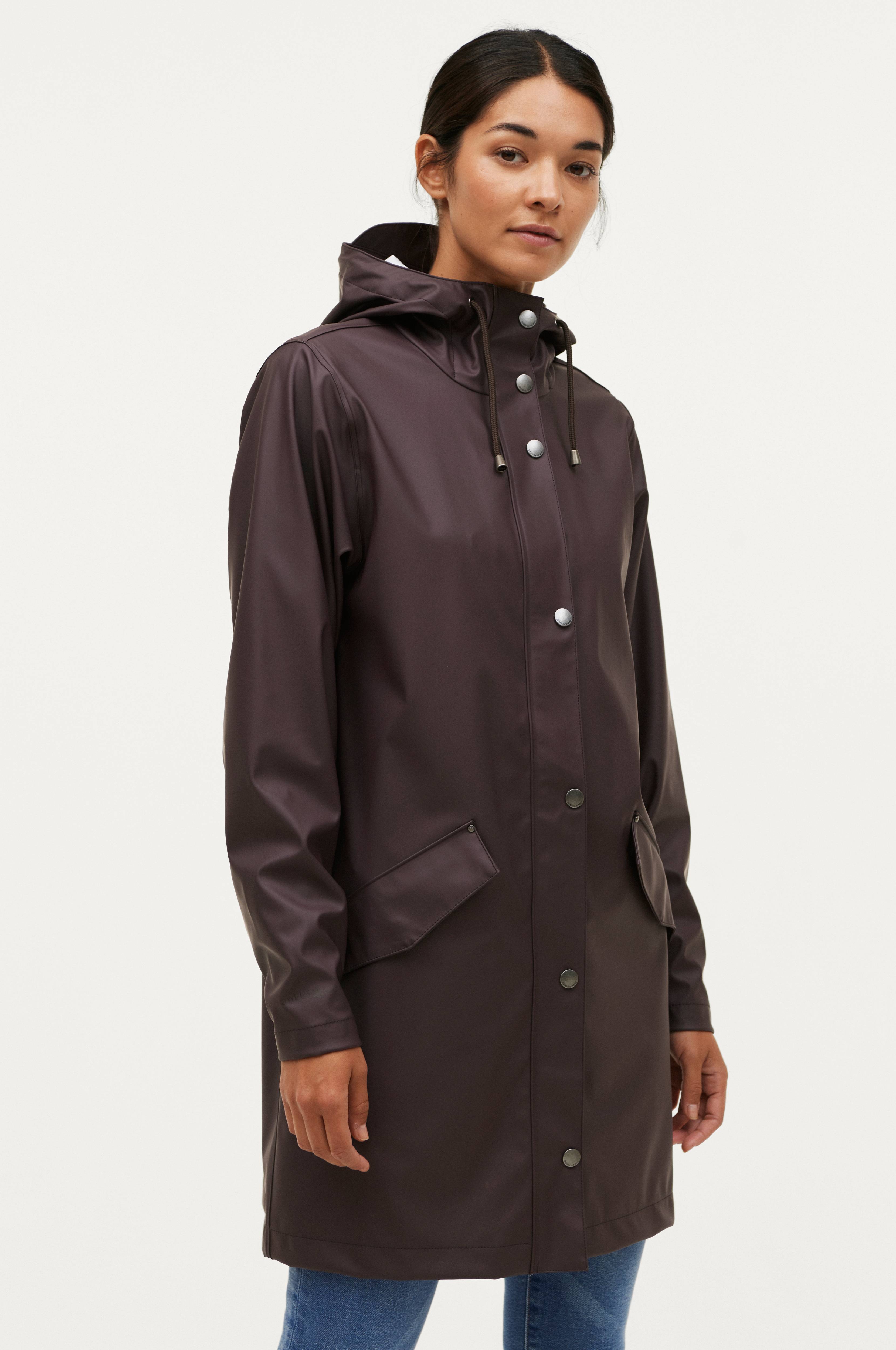 Áhkká PU Parka W -sadetakki on tuulen- ja vedenpitävä, ja siinä on hitsatut saumat. Kiinteä huppu, jossa nyöri ja stopperit. Vetoketjun päällä painonapillinen tuulisuojalista. Kaksi painonapillista taskua. Hihansuiden leveyttä voi säätää kahdella painonapilla. Pituus n. 87 cm koossa 38/40.