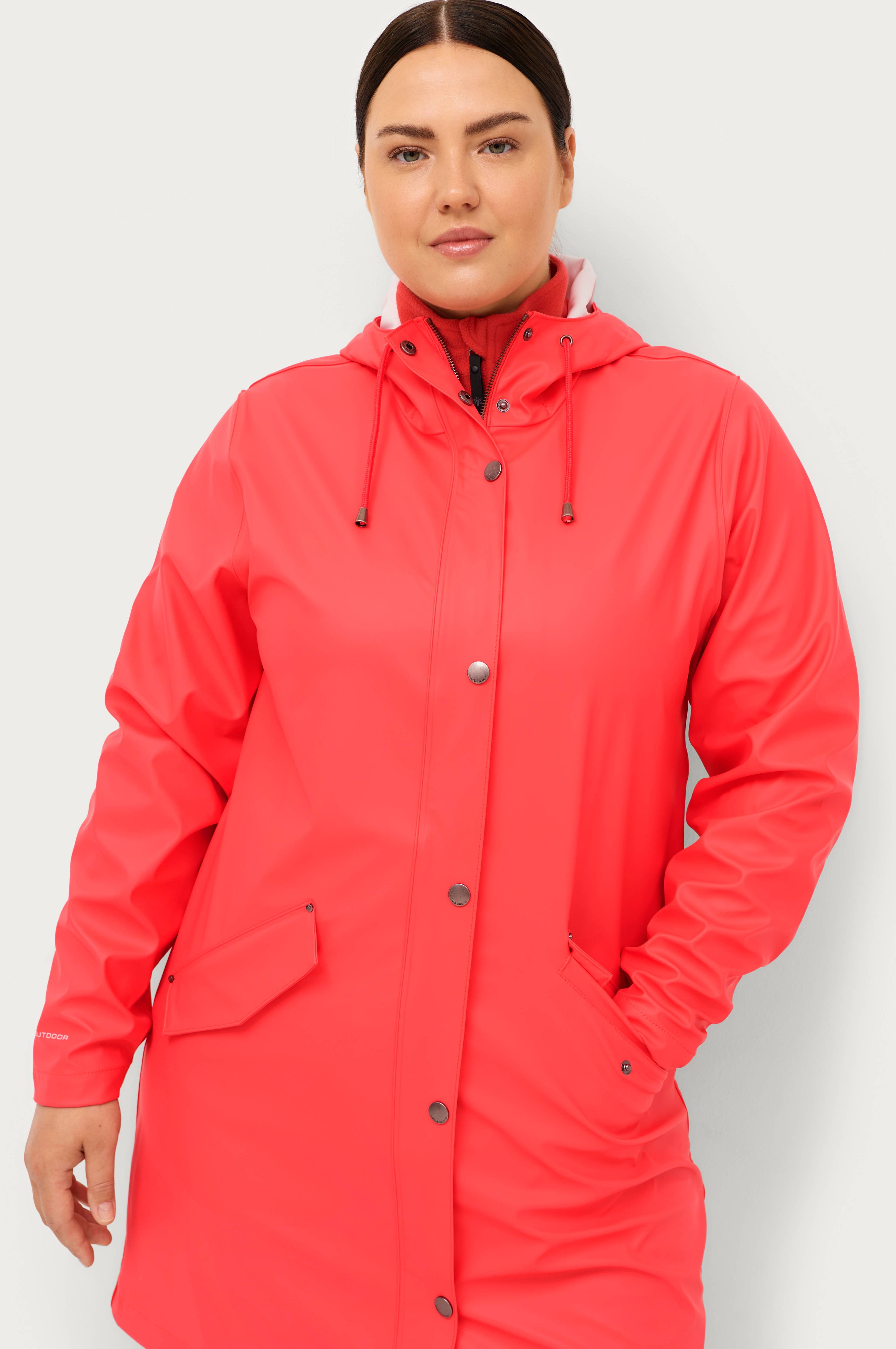 Áhkká PU Parka W -sadetakki on tuulen- ja vedenpitävä, ja siinä on hitsatut saumat. Kiinteä huppu, jossa nyöri ja stopperit. Vetoketjun päällä painonapillinen tuulisuojalista. Kaksi painonapillista taskua. Hihansuiden leveyttä voi säätää kahdella painonapilla. Pituus n. 87 cm koossa 38/40.
