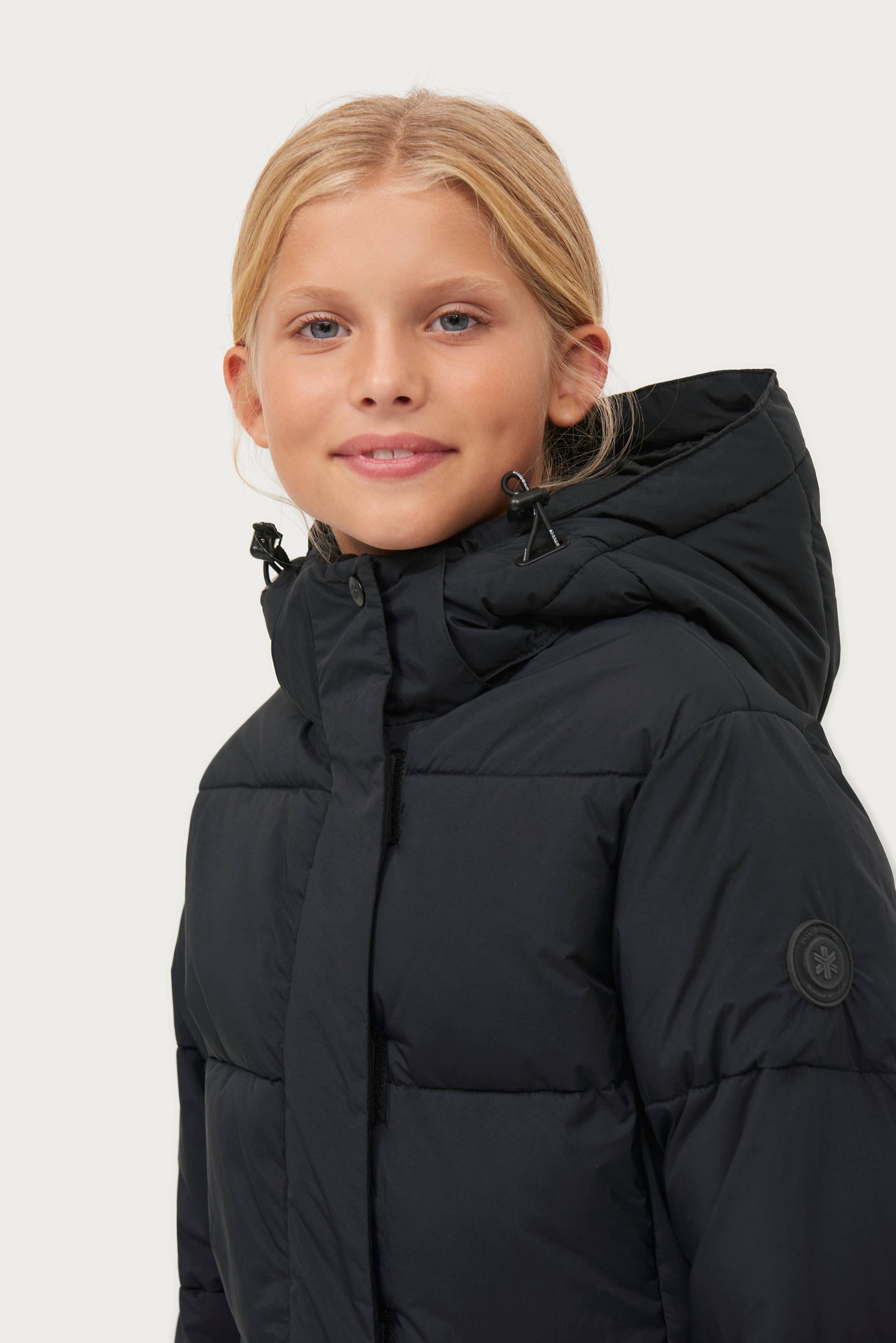 Kevyt, lämmin ja pehmeä toppatakki, jossa polyesteritäyte. Mattapintainen päällyskangas, jossa aavistuksen ryppykäsitelty tuntu. Kiiltävä vuori ja sointuva logo.