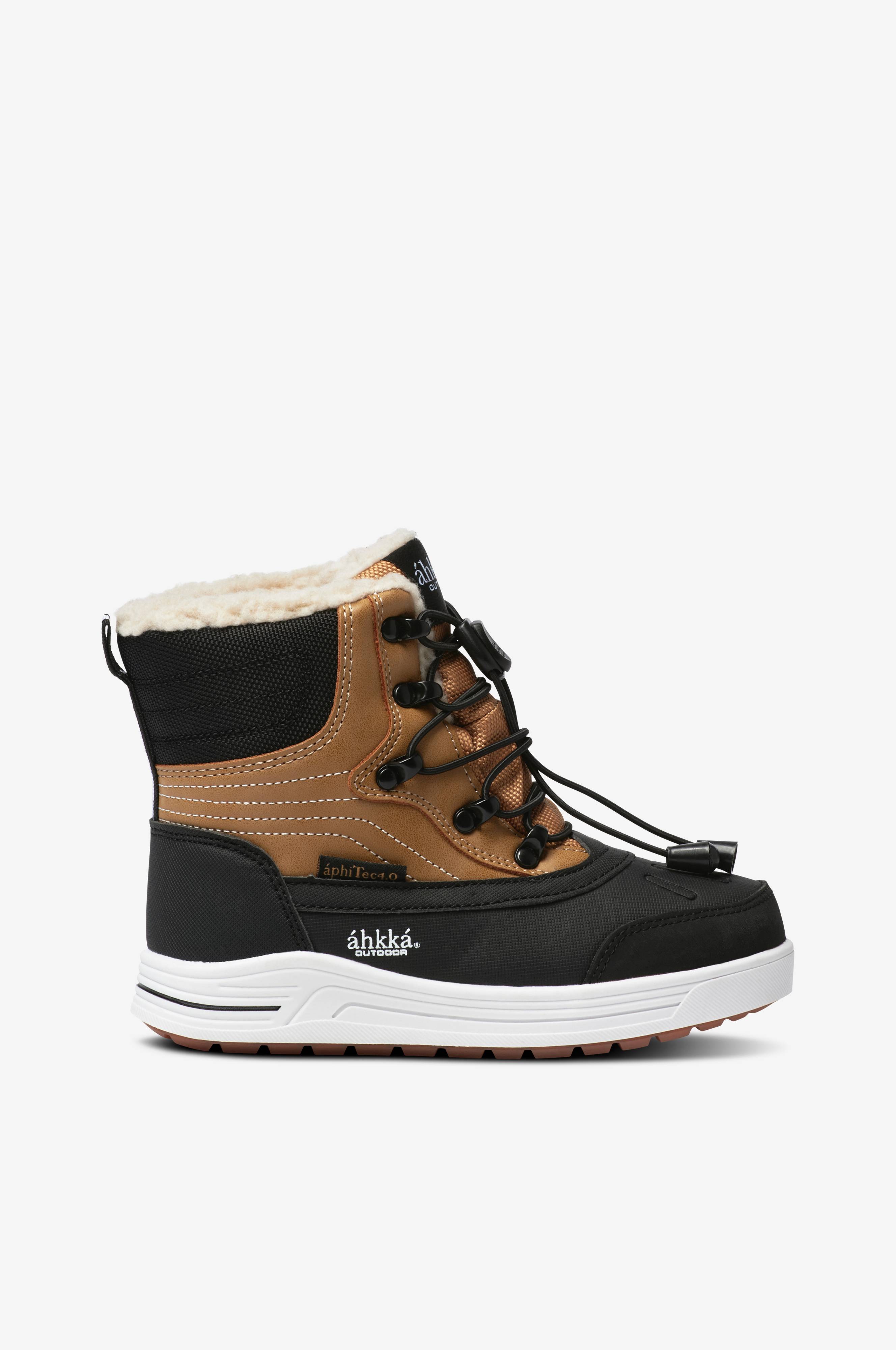 Lämminvuoriset talvikengät, joiden vedenpitävä áphiTec4.0-kalvo hengittää ja siirtää kosteutta pois. Kumivahvisteinen kärki. Pehmeä ja lämmin tekoturkisvuori. Joustava pikanyöritys ja stopperi. Kangaspäällinen, jossa nahkajäljitelmäosioita. Karkeakuvioinen ulkopohja. Varren korkeus n. 11 cm.