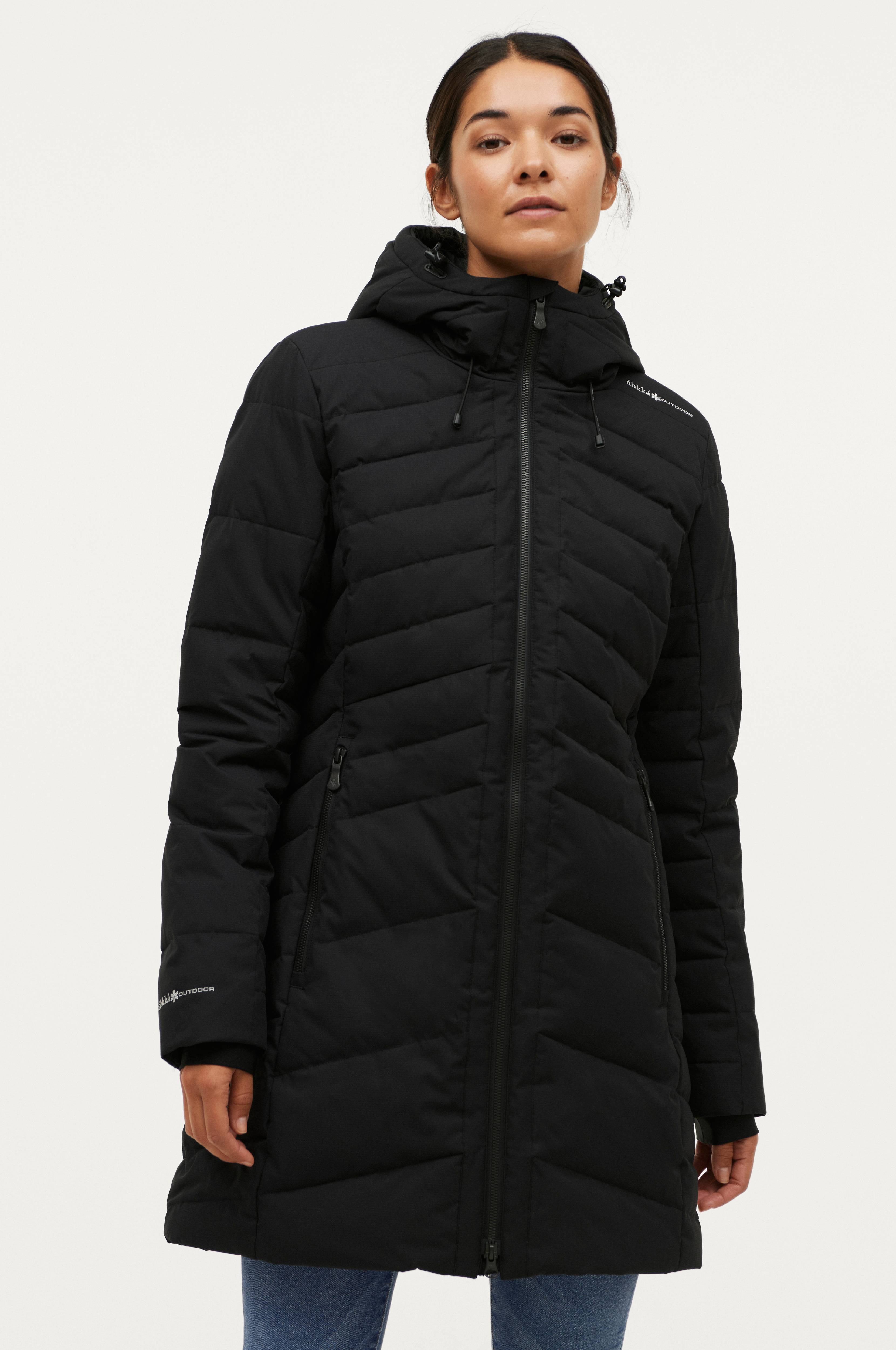 Kevyt ja kätevä tikattu Áhkká-untuvaparkatakki, jossa naisellinen leikkaus. Tikattu päällyskangas 100% kierrätettyä polyesteriä. Täyte 60% untuvaa/höyheniä (80% untuvaa, 20% höyheniä) ja 40% synteettistä materiaalia. Untuva on kevyttä ja lämmintä, ja synteettinen materiaali kuivuu nopeasti - saat käyttöösi molempien materiaalien parhaat ominaisuudet. Pesun jälkeen takki kuivuu nopeammin kuin untuvatakki eikä täyte kasaudu.