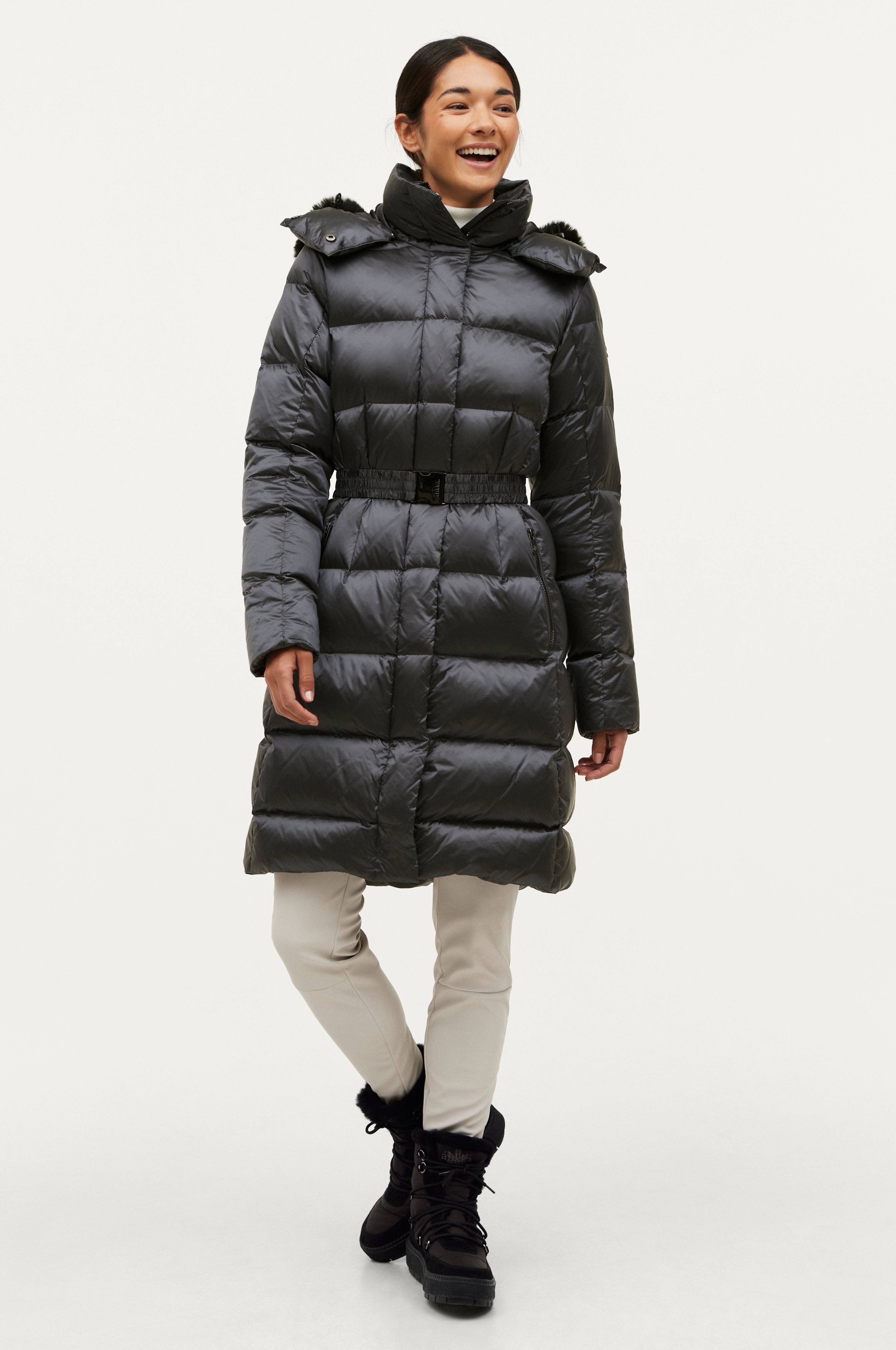 Lämmin, kätevä ja kevyt takki, jossa täyte 90% untuvaa ja 10% höyheniä. Fillpower 760. Polvipituinen malli, jossa tuulenpitävä ja vettä hylkivä päällyskangas.