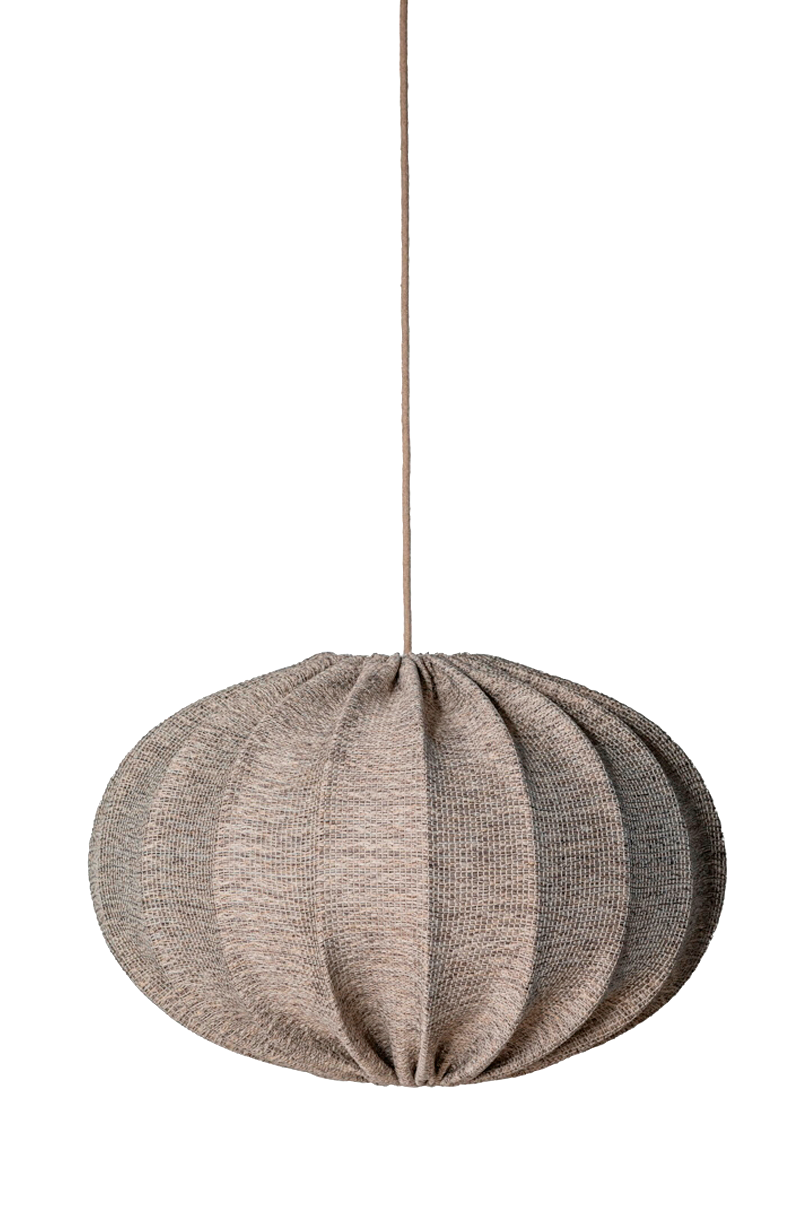 Kuu klassisessa päivitetyssä muodossa, joka on valmistettu karkeammasta kankaasta, joka antaa vaihtelevan ulkonäön valaistuna tai valaisemattomana. Johto/riippuvalaisin ei sisälly toimitukseen, ja sitä voidaan täydentää Alde & Lindin kattopistokkeella 2249813, joka on saatavana useissa eri väreissä.
