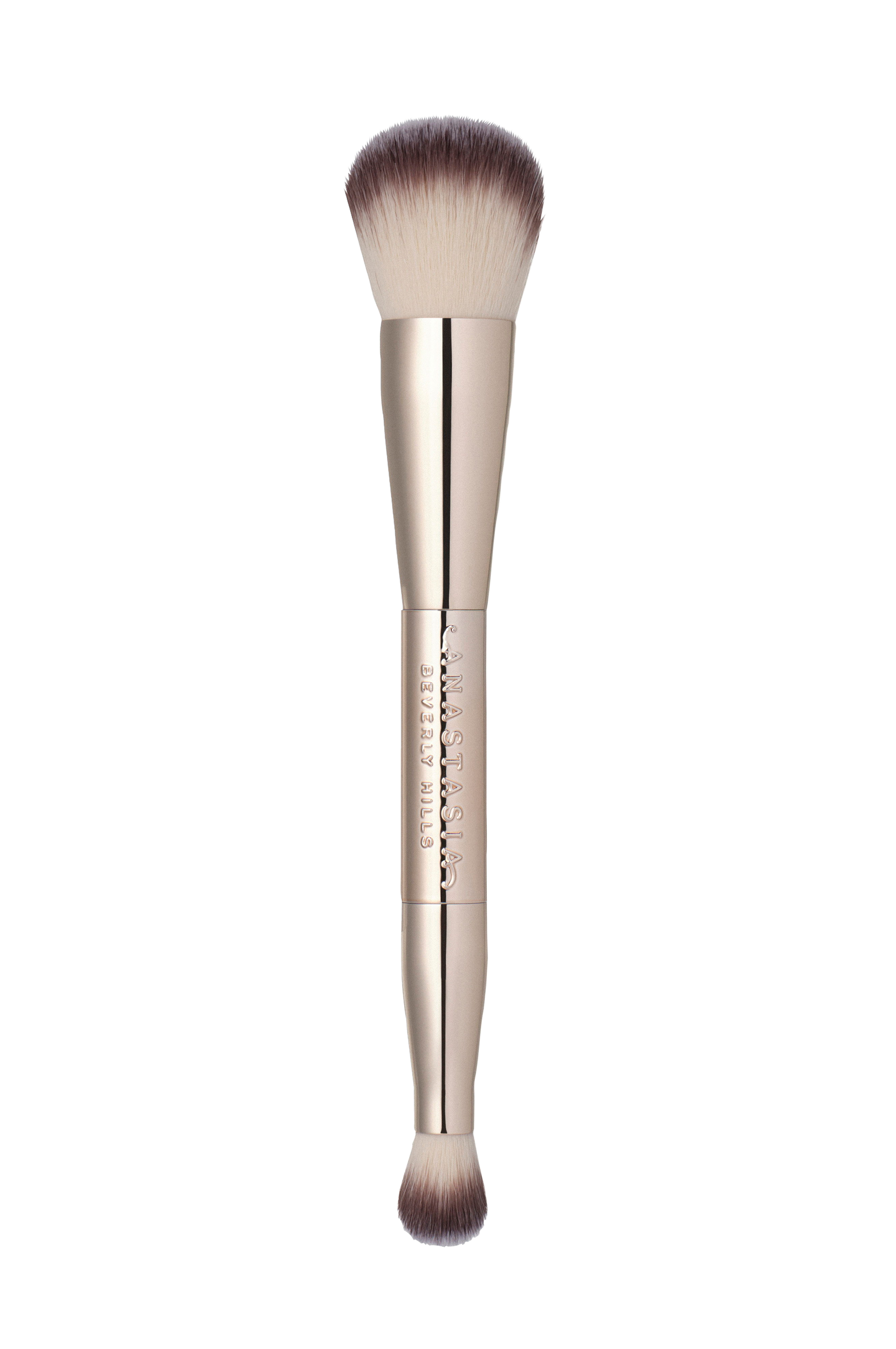 Anastasia Beverly Hills Impeccable Foundation & Face Brush on kaksipäinen, kaikki yhdessä -työkalu, joka levittää meikkivoiteen virheettömästi ja häivyttää sen saumattomasti, jolloin lopputulos on ilmavasti sivelty. Erittäin pehmeät synteettiset kuidut liukuvat pilvimäisen pehmeästi ja häivyttävät foundation, peitevoiteen, poskipunan ja paljon muuta.
