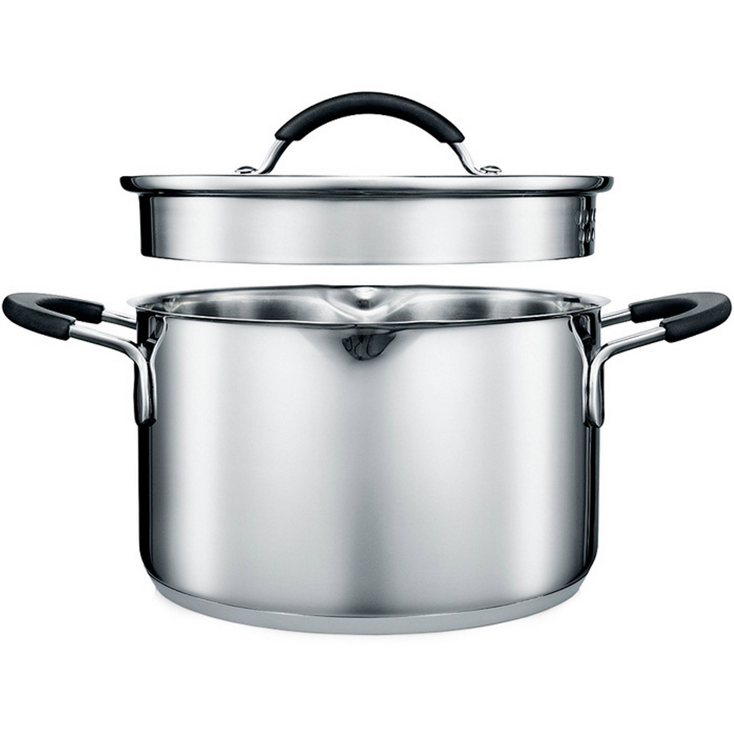 joka on valmistettu korkealaatuisista materiaaleista ruoanlaiton helpottamiseksi. Valmistettu ruostumattomasta teräksestä 18/10, jonka moderni muotoilu sopii kaikkiin keittiöihin. Siinä on myös lasikansi, jonka avulla voit seurata ruoanlaittoa nostamatta kantta. Mukavaa ja turvallista käyttöä varten kattilassa on kuumuutta kestävät silikonikahvat, joten sitä voi käsitellä ilman uunihanskoja myös kuumana. Älykäs kaatosuihku on sisäänrakennettu veden tai liemen sotkuista tyhjentämistä varten. Padassa on myös teräskapseloitu pohja, joka takaa tasaisen ja tehokkaan lämmönjakautumisen, mikä takaa nopean kuumenemisen ja energiaa säästävän ruoanvalmistuksen. Se on yhteensopiva kaikkien liesien kanssa, myös induktiolieden kanssa, joten se on joustava ja hyödyllinen kaikissa keittiöissä.