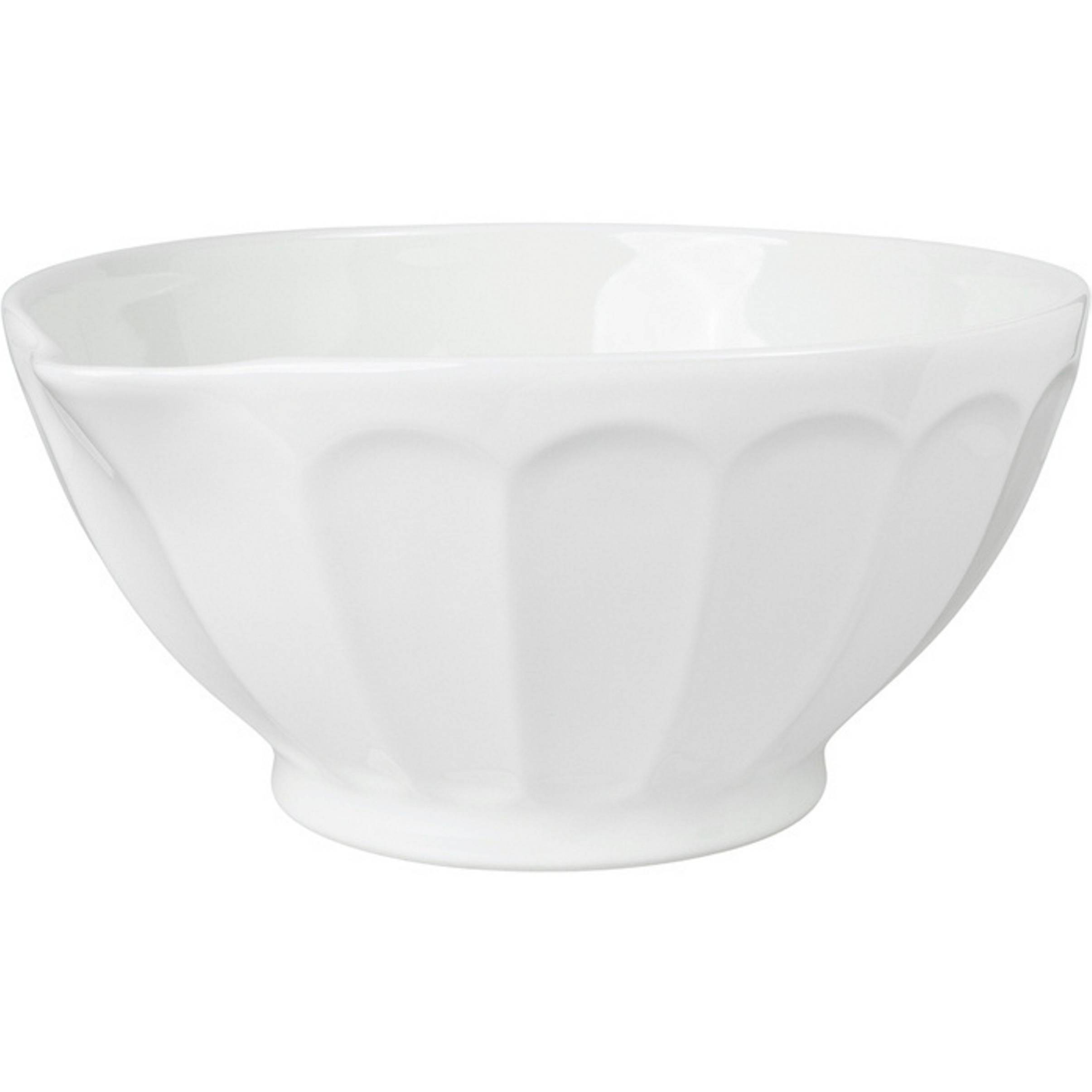 tekee siitä täydellisen kaikkeen leivonnasta aterioiden valmisteluun. Käytännöllisen kaatosuihkun ansiosta taikinan, kastikkeen tai muiden ainesosien kaataminen on helppoa ilman sotkua, ja ulkosivulla oleva koristeellinen kohokuvio tarjoaa sekä hyvän otteen että tyylikkään kosketuksen. Kulho on valmistettu Portugalissa ja se on astianpesukone- ja mikroaaltouuninkestävä - siinä yhdistyvät käytännöllisyys ja tyyli.