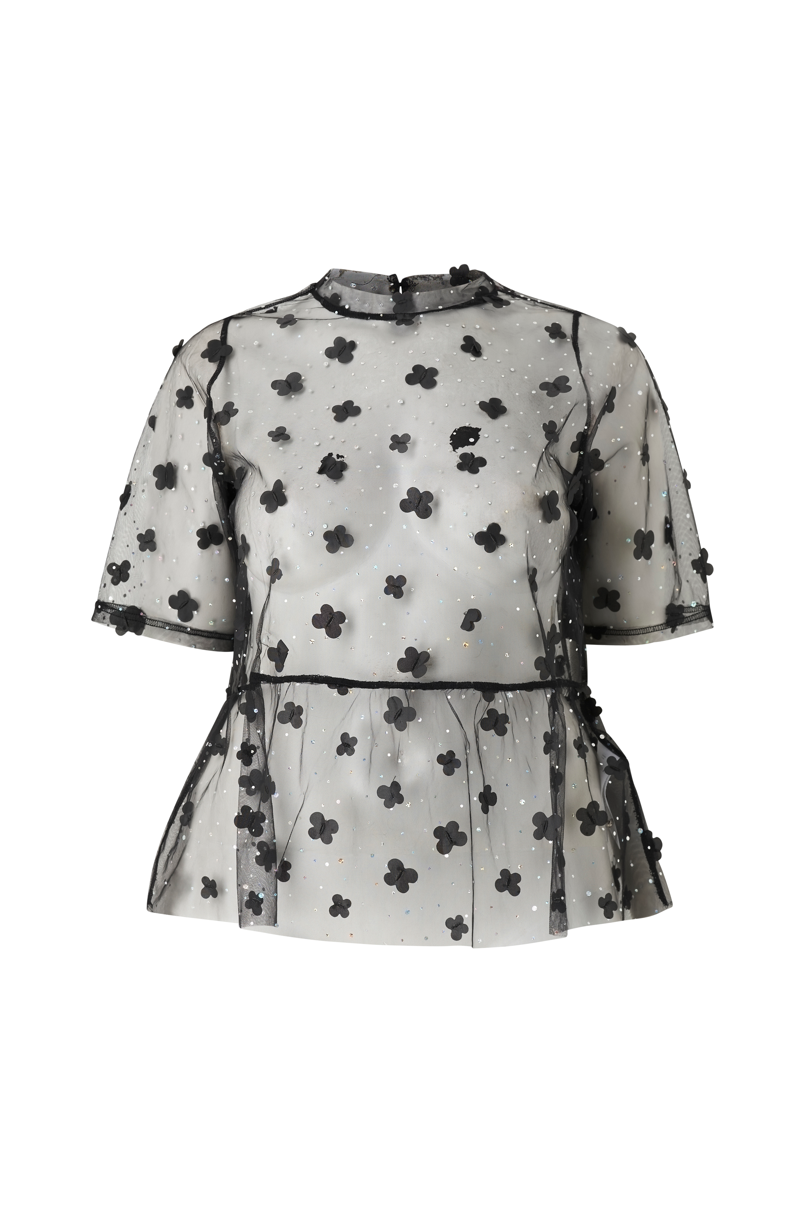 • Läpinäkyvä pusero verkkokankaasta koristeilla tekstiilistä