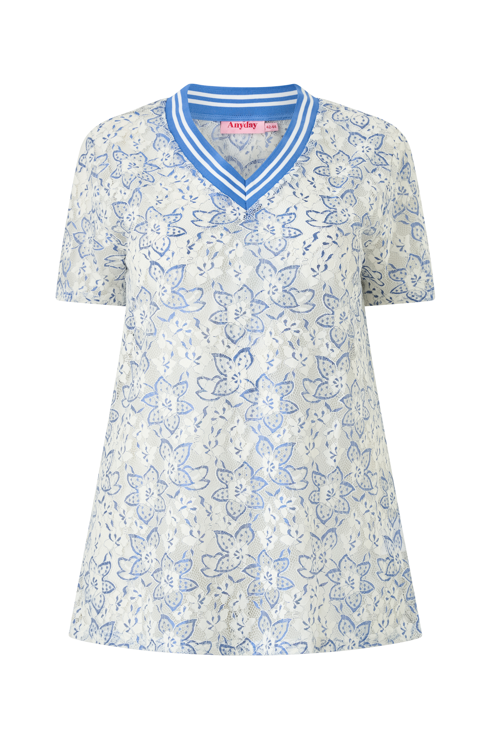 • Lyhythihainen toppi pitsistä• V-muotoinen, ribattu pääntie• Plus-koot