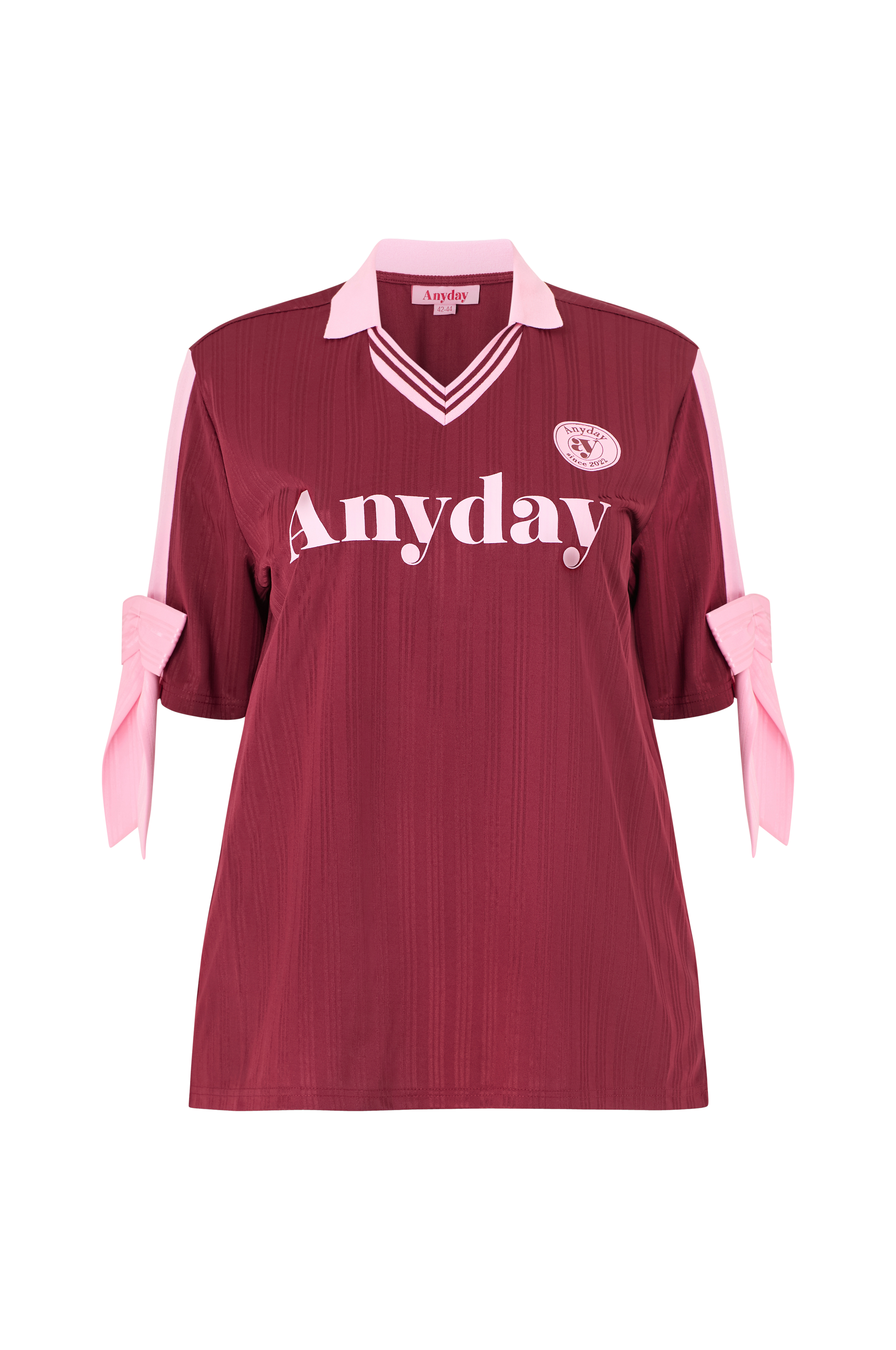 • Sporttinen toppi klassisella kauluksella• Kimalteleva, raidallinen muotoilu• V-muotoinen pääntie• Painetut logot rinnassa• Kiinniommellut, koristeelliset nauhat hihoissa• Plus-koot