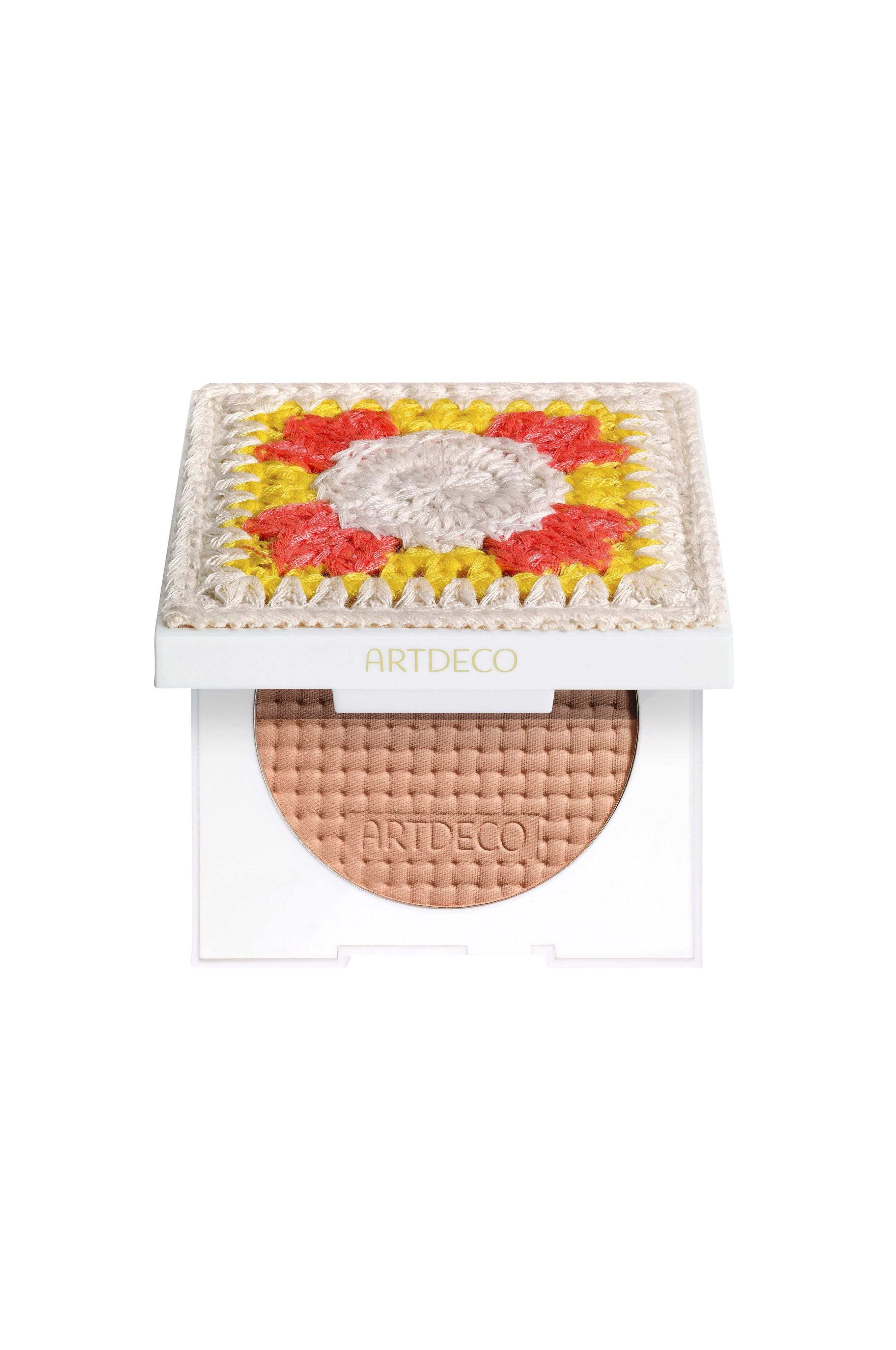Auringon suutelemaa hehkua - tutustu Bronzing Powder St. Tropez Taniin ja anna ihollesi luonnollisen ruskettuneen raikkauden hetkessä.Väri ja koostumusKaksi viileää sävyä ovat täydellisesti koordinoituja. Sekoita niitä keskenään puuterisiveltimellä täydellisen sävyn saavuttamiseksi. Yksilöllistä ilmettä varten voit myös levittää kaksi väriä erikseen. Ripaus helmiäistä loihtii poskille hienostuneen lopputuloksen.Samettisen pehmeä koostumus takaa miellyttävän tunteen iholla ja värin välitön vapautuminen tekee levittämisestä lastenleikkiä. Ainutlaatuinen, aidosta langasta valmistettu virkattu muotoilu on visuaalinen katseenvangitsija ja tekee tästä bronzerista ehdottoman kesäisen must-havenin! Pakkaus: - Uudelleentäytettävä tölkki muodikkaassa, aidosta langasta valmistetussa virkatusmallissa.