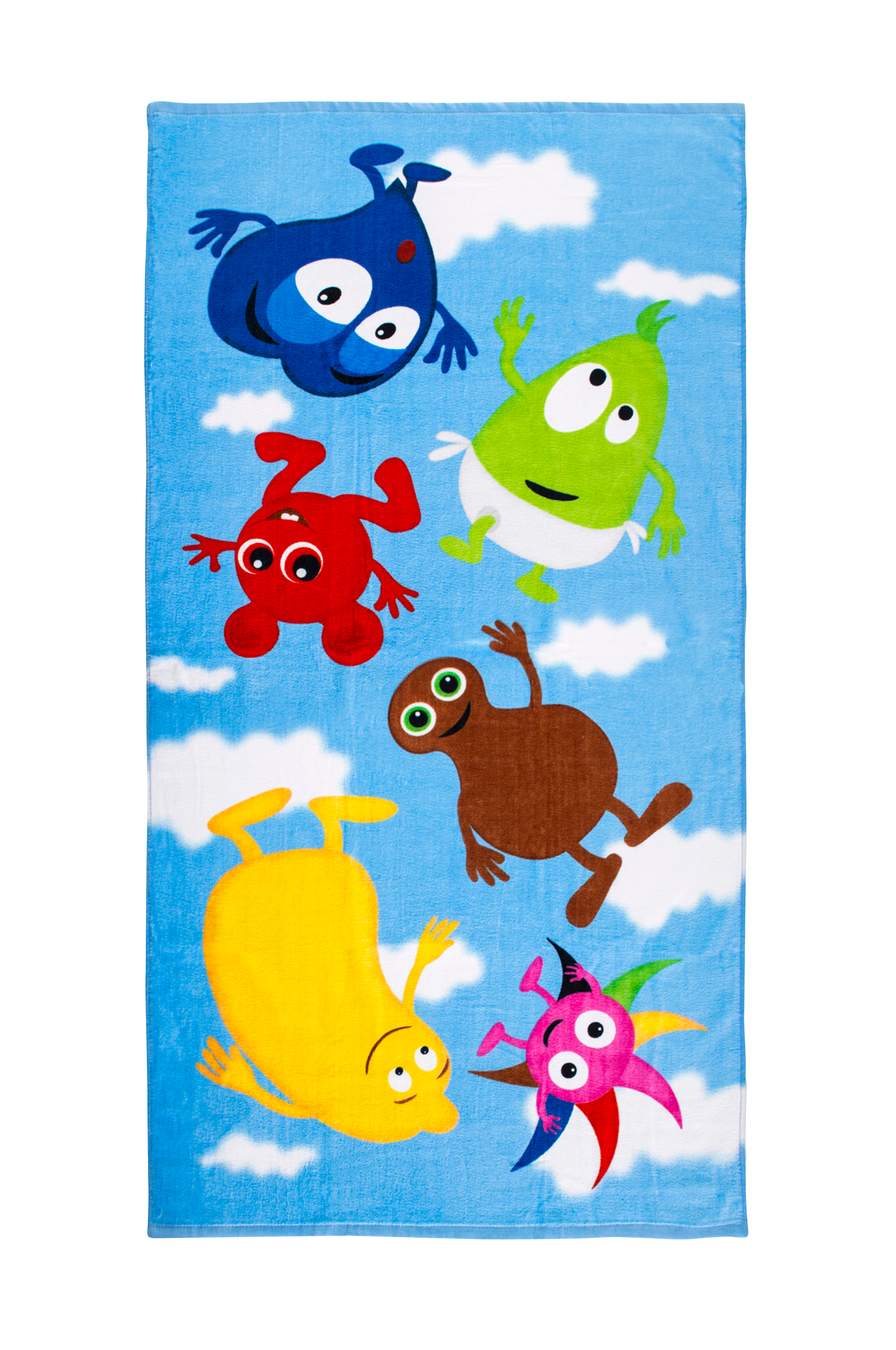 Viimeinkin pyyhe, jossa on babblarna-kuvio. Babblarna-hahmot odottavat pääsevänsä mukaan rannalle, uimahalliin tai kuivaamaan sinua suihkun jälkeen.