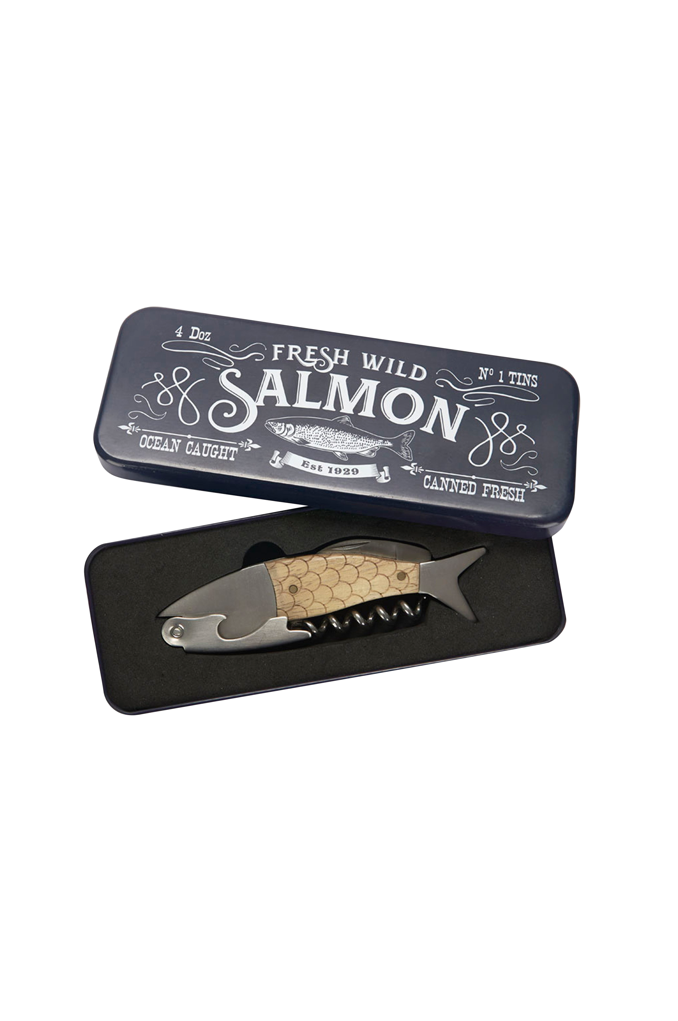 Korkkiruuvi wild salmon pullonavaaja ja muntifuncion-työkalu. Hauska muotoilu. Voit pitää sitä näkyvillä, sen muotoilu antaa omaperäisen kosketuksen kotiisi. Monitoiminen. Korkkiruuvi, pullonavaaja ja monitoimityökalu yhdessä. Metallirasiassa. Sisältää metallisen laatikon retromuotoilun sen tallentamiseksi. Täydellinen lahja. Esitteleminen metallikotelolla tekee siitä täydellisen lahjan antamiseen ja nauttimaan juhlista ja juhlista. Mitat: Materiaali: teräs/puu.
