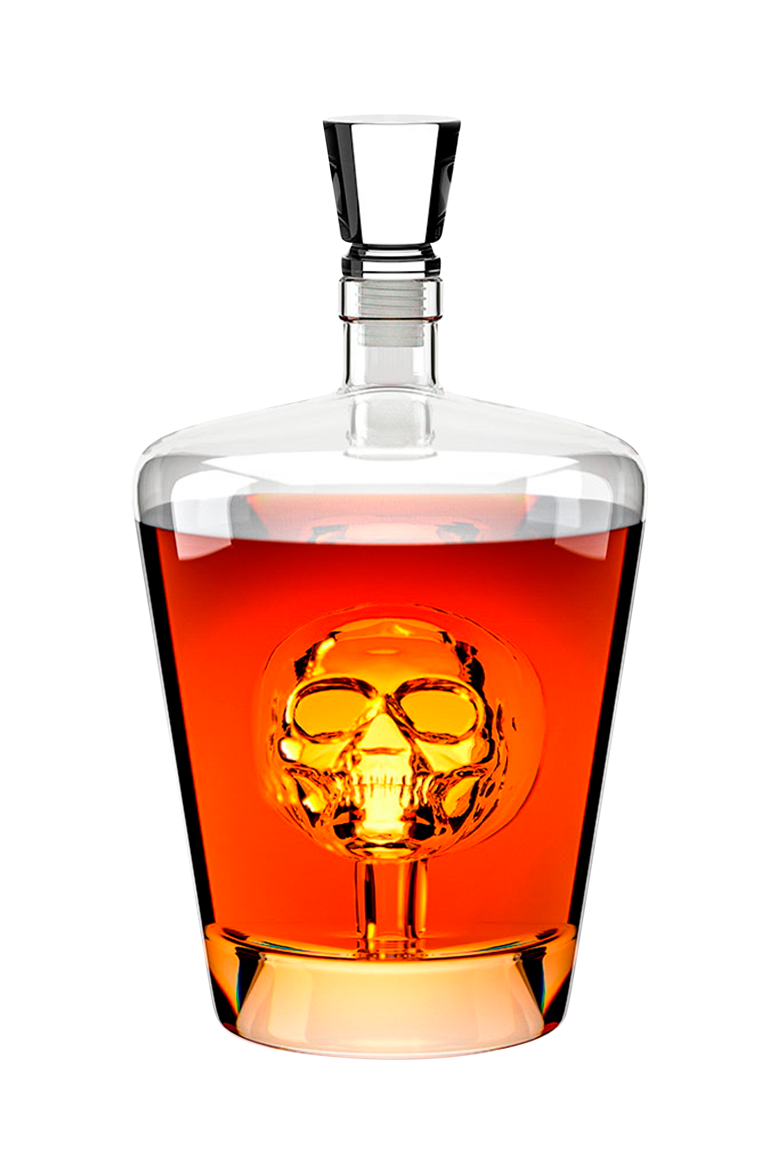 Balvi - myrkkyviski decanter pullo kaikenlaisten liquor: viskin, rommin, vodkan, ginin, konjakin dekantointiin. Sen sisällä on kallo. Valmistettu lasista. Astianpesukoneen kestävä. Mitat: 24x13x13 cm Materiaali: lasi