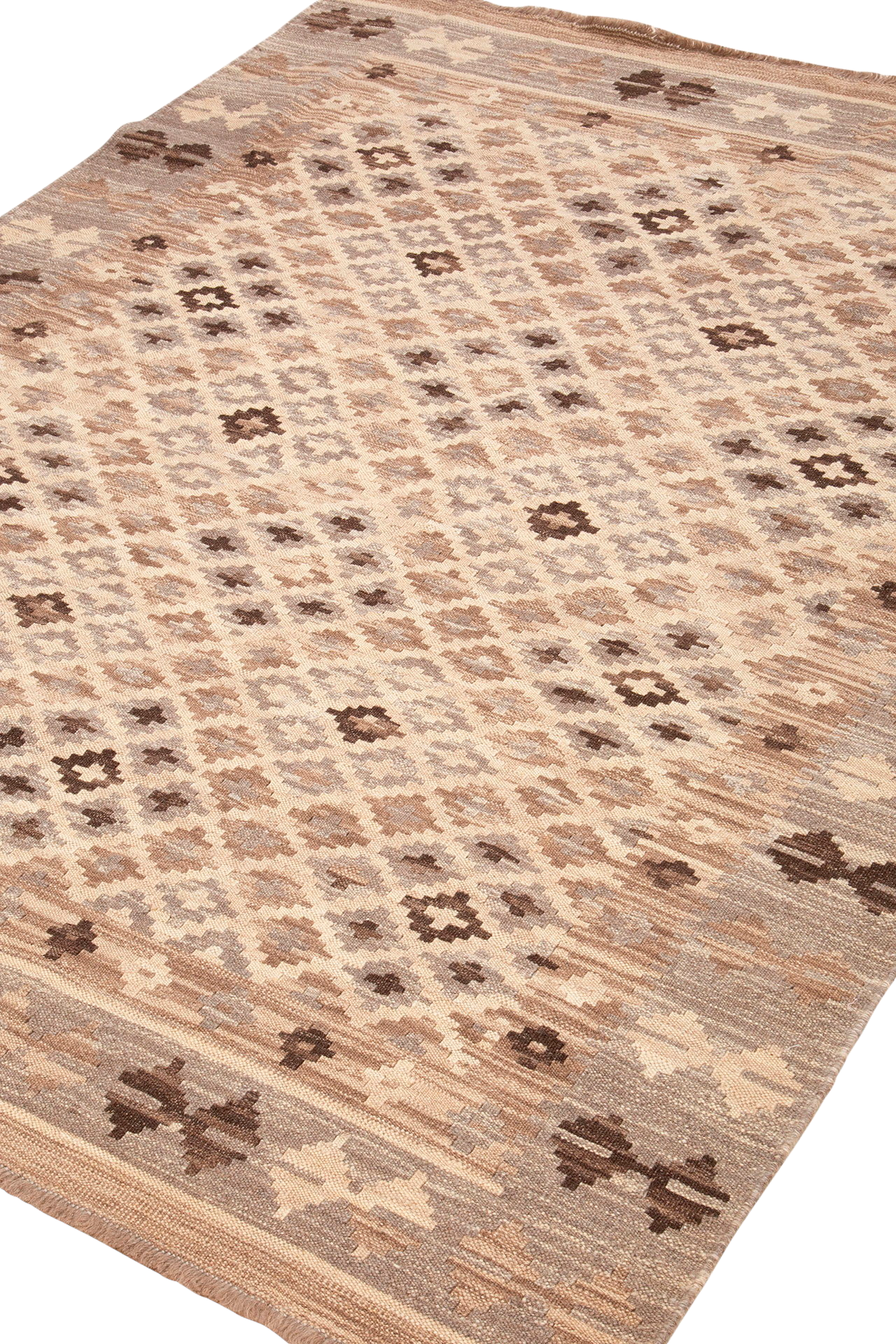 Klassinen kudottu matto, jossa on geometrinen kuvio koko pinnalla. Kasvivärjätty lanka takaa kauniin ja harmonisen väriskaalan, ja koska matto on kudottu 100 % villasta, se on sekä lämmin että likaa hylkivä. Helppo sijoittaa matto, joka sopii yhtä hyvin takan ääreen lempituolisi viereen kuin keittiöön. Kaikki kilim -matot ovat käännettävissä, joten voit käyttää mattoa molemmin puolin.