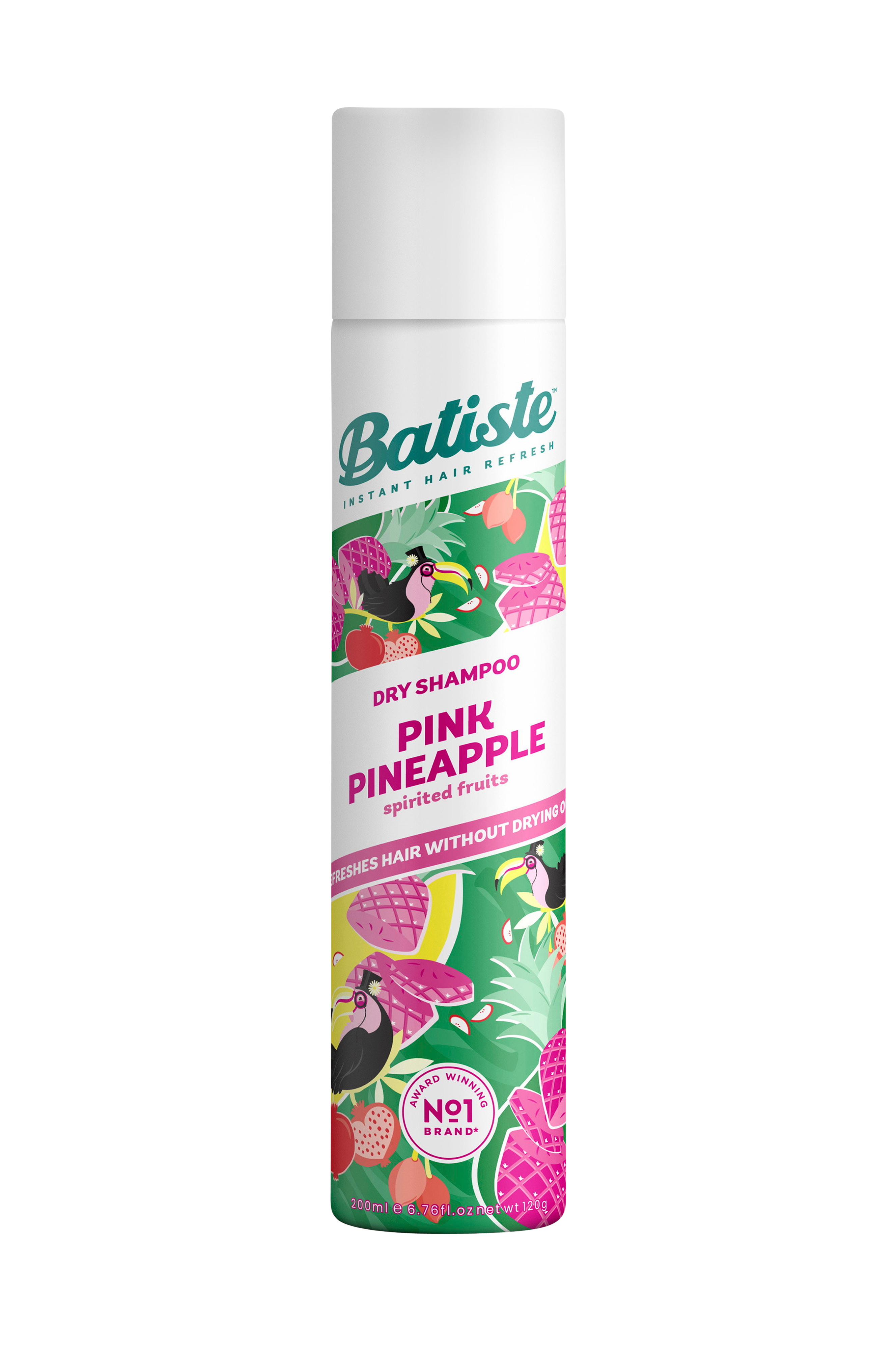 Tehokas kuivashampoo, joka saa hiukset tuntumaan välittömästi puhtailta. Suihkepullo on helppokäyttöinen, ja olet hetkessä valmis uusiin seikkailuihin! Sisältää riisitärkkelystä, joka imee ylimääräisen rasvan hiuspohjasta ja tyvestä sekä kohottaa hiuksia. Käyttö: Suihkuta hiusten tyveen 30 cm:n etäisyydeltä ja hiero tuote huolella hiuksiin. Kampaa hiukset sen jälkeen tuotejäämien poistamiseksi. Vinkki: Suihkuta vastapestyihin hiuksiin saadaksesi tuuhean ja pitävän kampauksen.Batiste Pink Pineapple on saanut inspiraatiota roosasta ananaksesta ja siinä on hedelmäinen ja kevyt tuoksuyhdistelmä, jossa on granaattiomenan, guavan ja omenan sävyt.