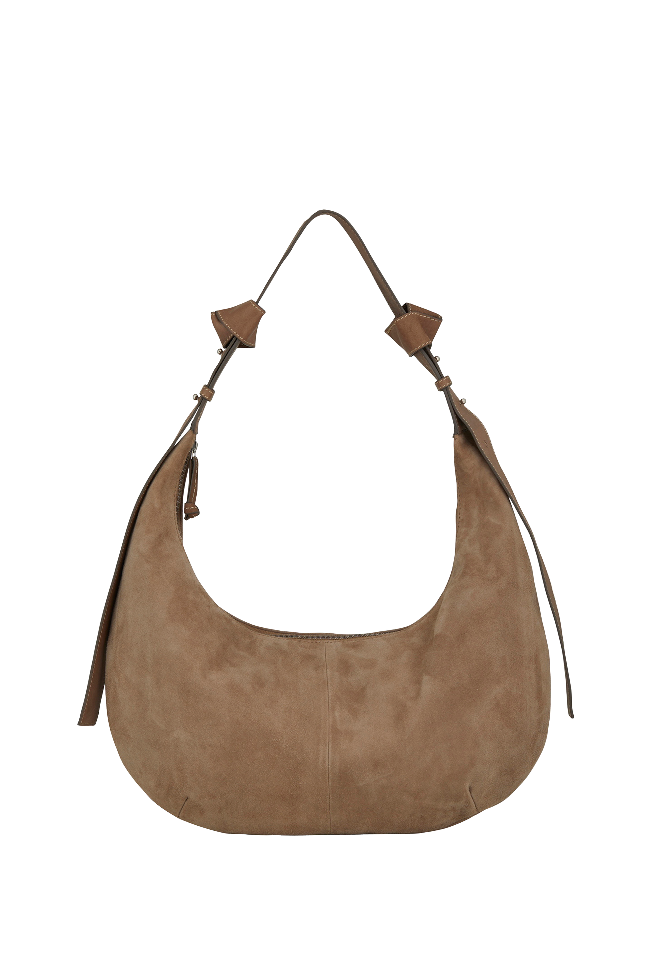 • Suuri, puolikuun muotoinen laukku mokkanahkasta• Vetoketju• Tekstiilivuori• Osio vetoketjulla sisäpuolella• Säädettävä olkain• Mitat: B 47 x H 34 cm