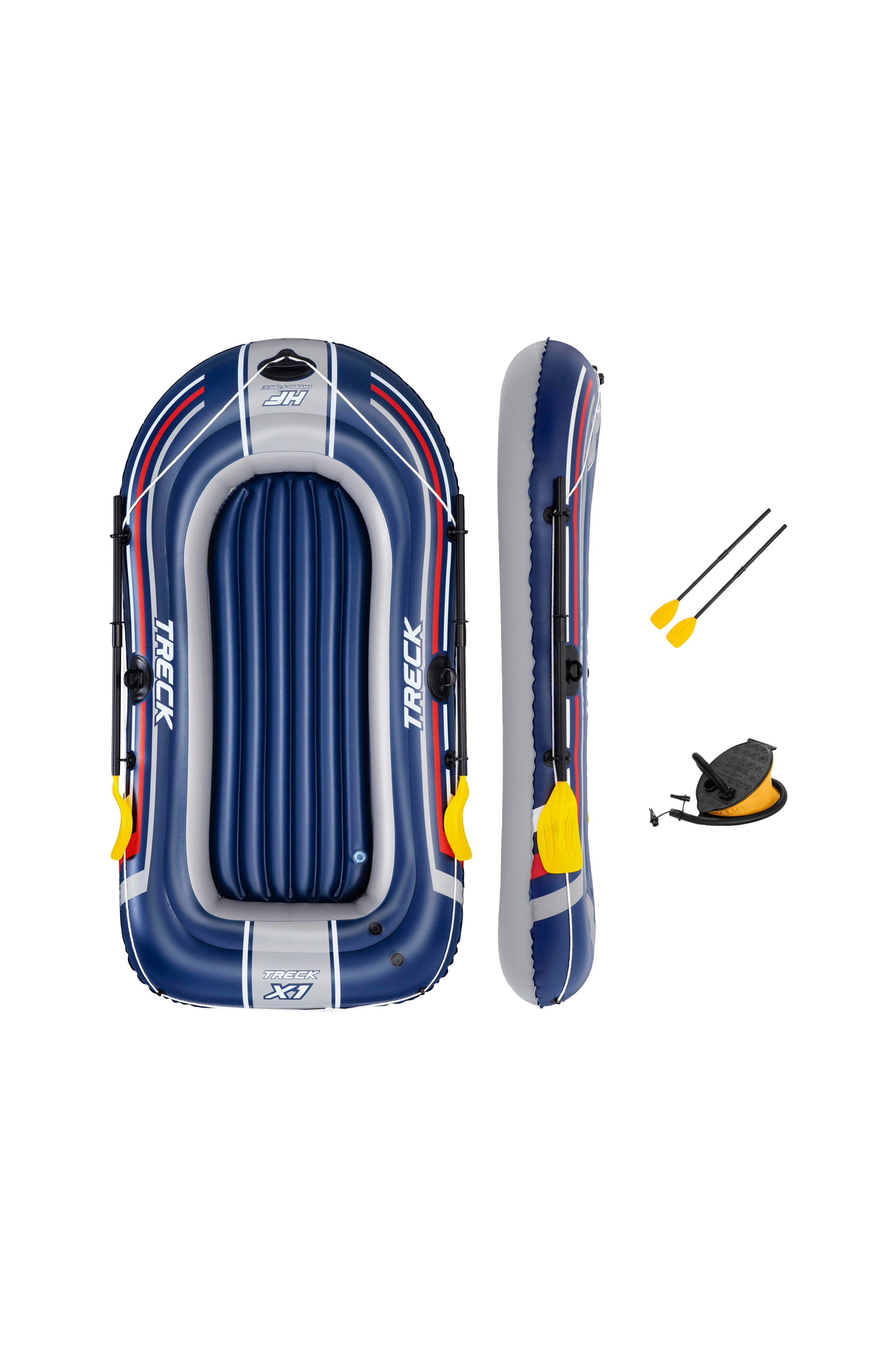 Bestway Båtset -setti, jossa hieno ilmalla täytettävä vene sekä siihen kuuluvat airot. Lähde melomaan!