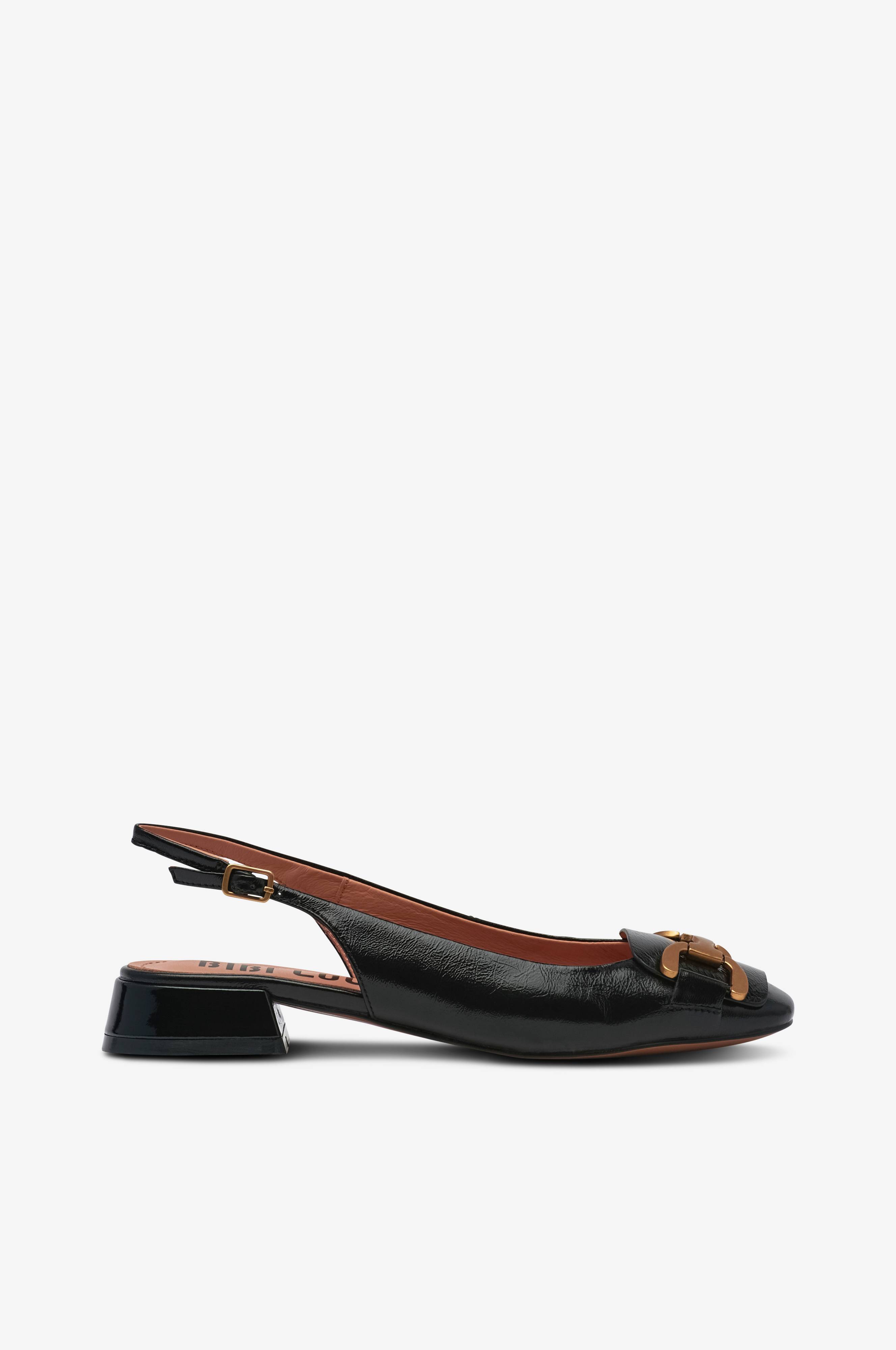 • Sileä malli nahasta• Suora kärki kullanvärisellä koristeella metallista• Nahkaverhoiltu• Topattu sisäpohja• Säädettävä selkänyöri• Päällystetty korko• Koron korkeus: 3 cm