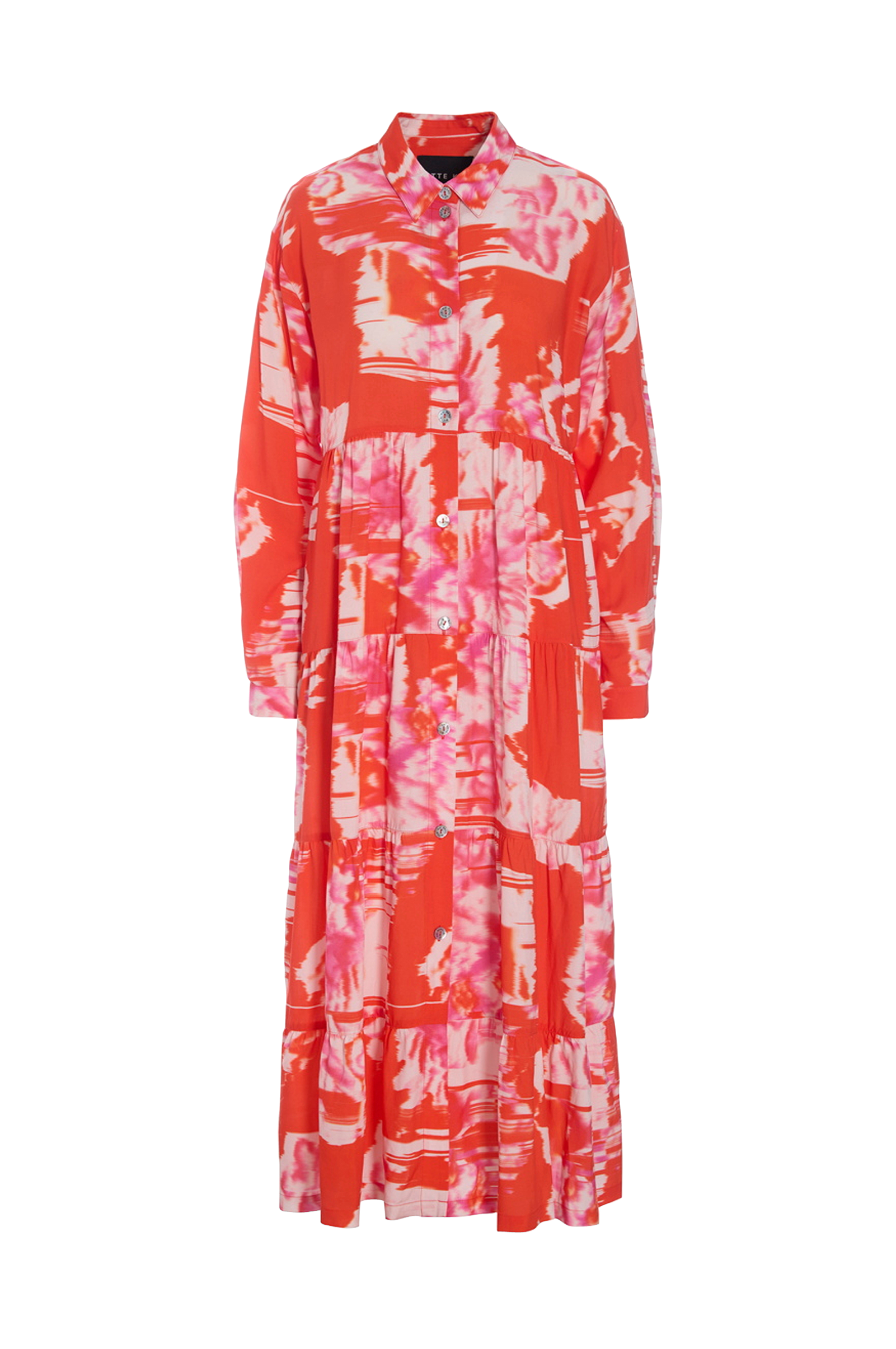 • Pitkä, pehmeä mekko viskoosista• Pitkät hihat• Halkio napilla hihansuissa• Nappikiinnitys• Sivutaskut• Röyhelö alhaalla• Pituus: 130 cm koossa S