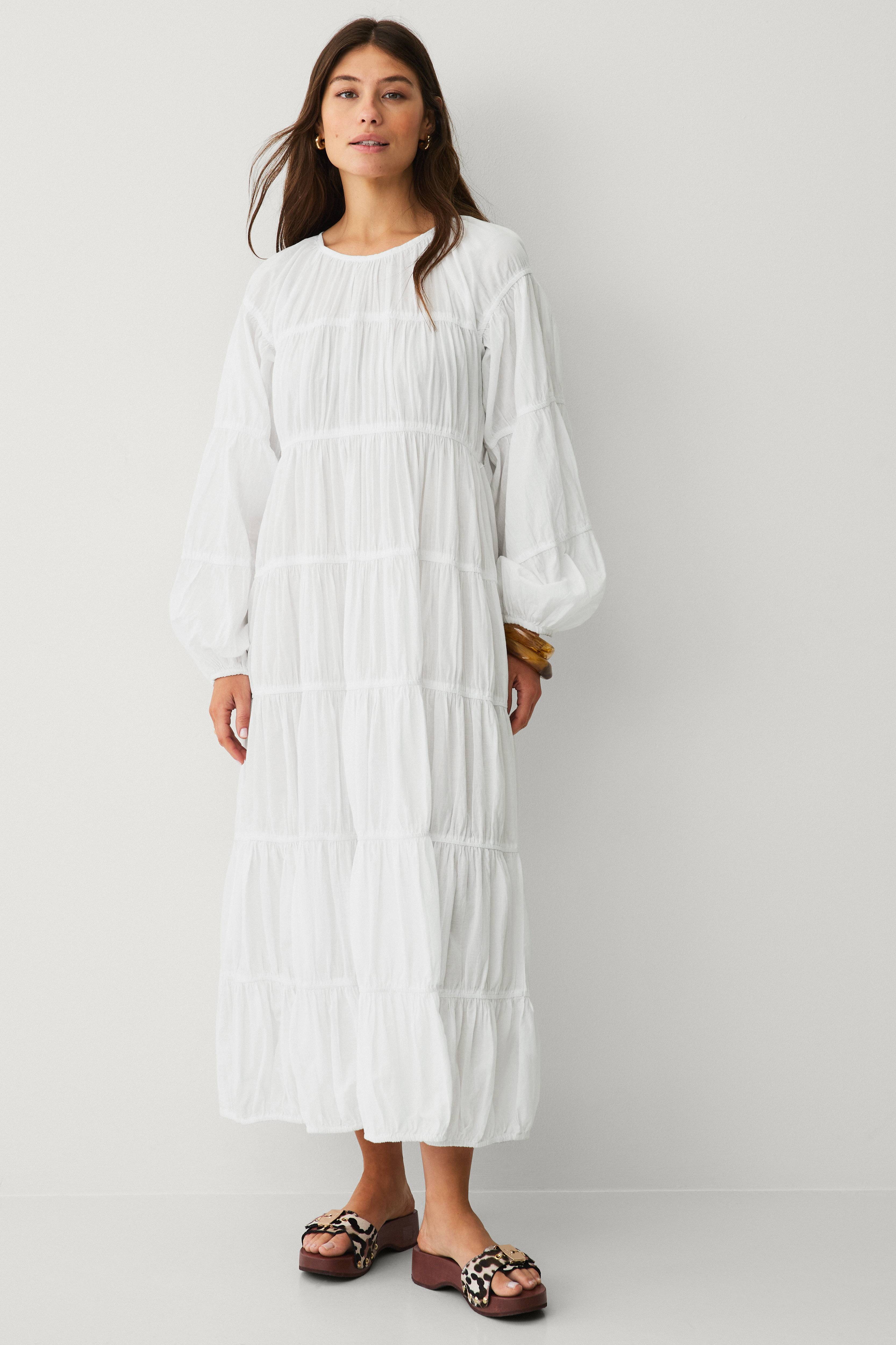 • Pitkä, kookas mekko• Vekkimalli• Joustava ryppy vaikutus• Pyöreä pääntie• Pitkät hihat• Avaimenreikäaukko takaosa napilla• Rento istuvuus• Pituus: 132 cm koossa