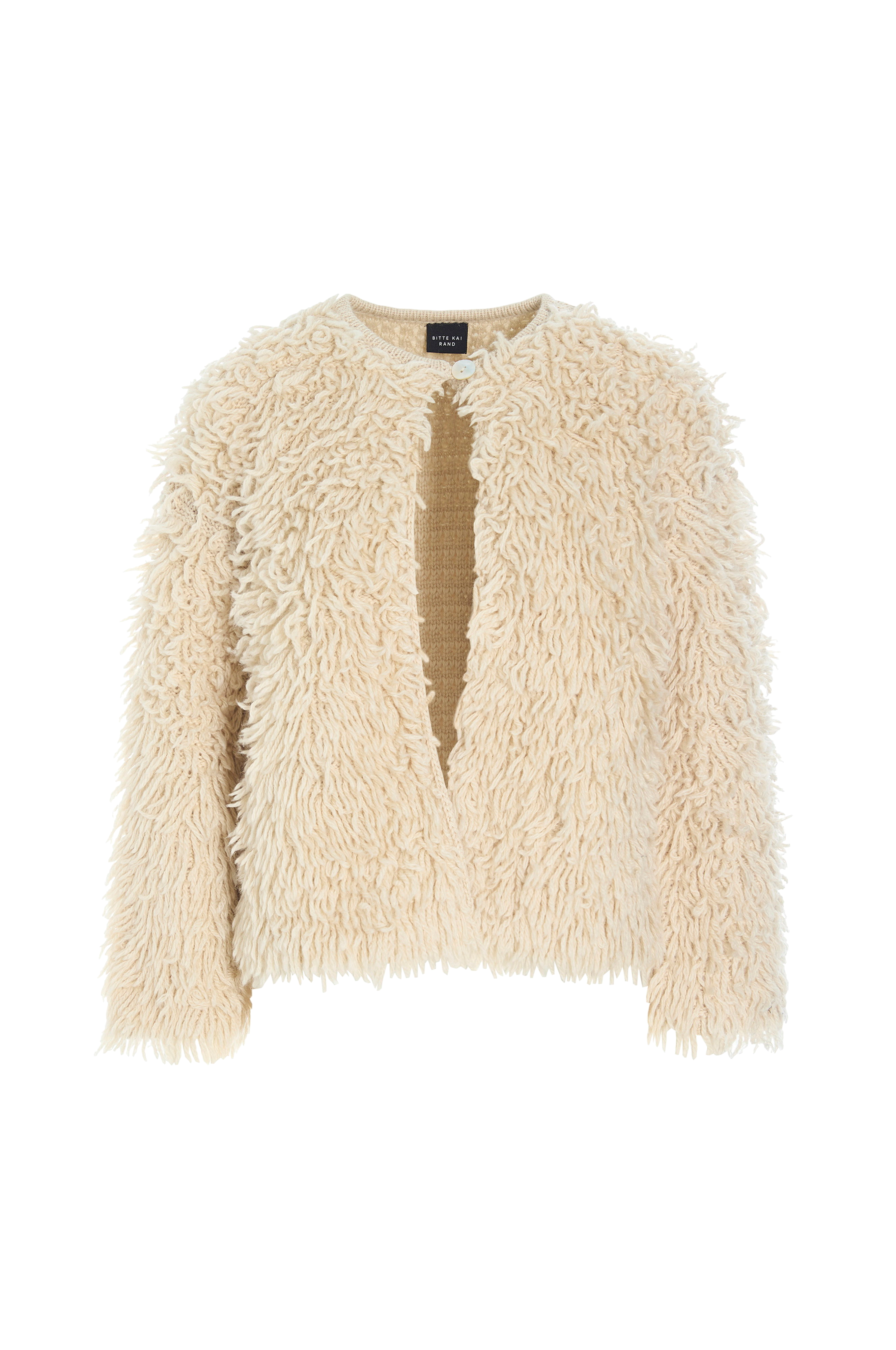 • Neuletakki villasekoitteesta pörröisillä hapsuilla
