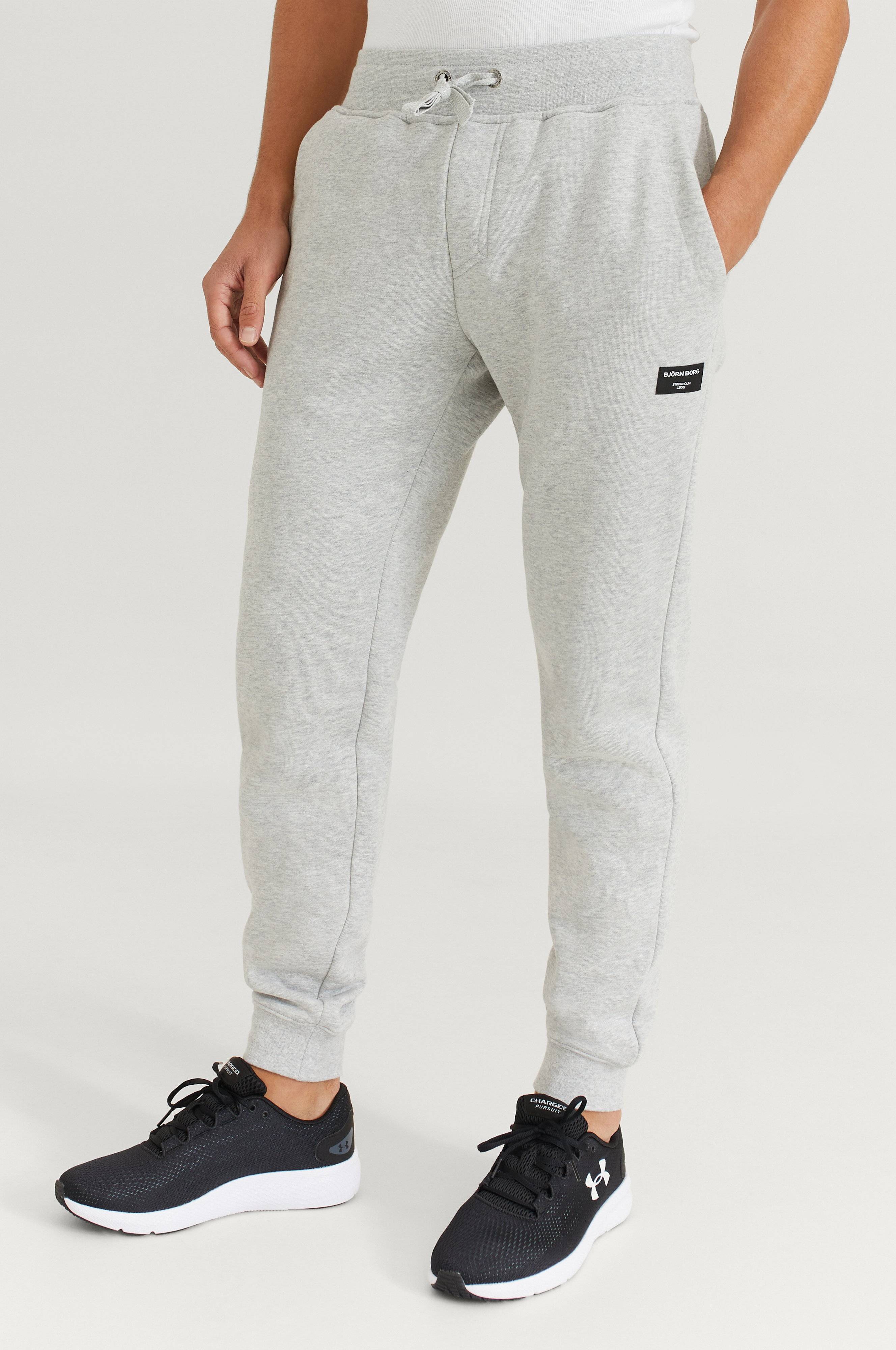 Björn Borg -collegehousut, joissa normaali istuvuus. Housuissa on kaksi sivutaskua ja kaksi takataskua. Säädettävä nyöri vyötäröllä ja resori lahkeensuissa. Pehmeäksi harjattu sisäpinta.