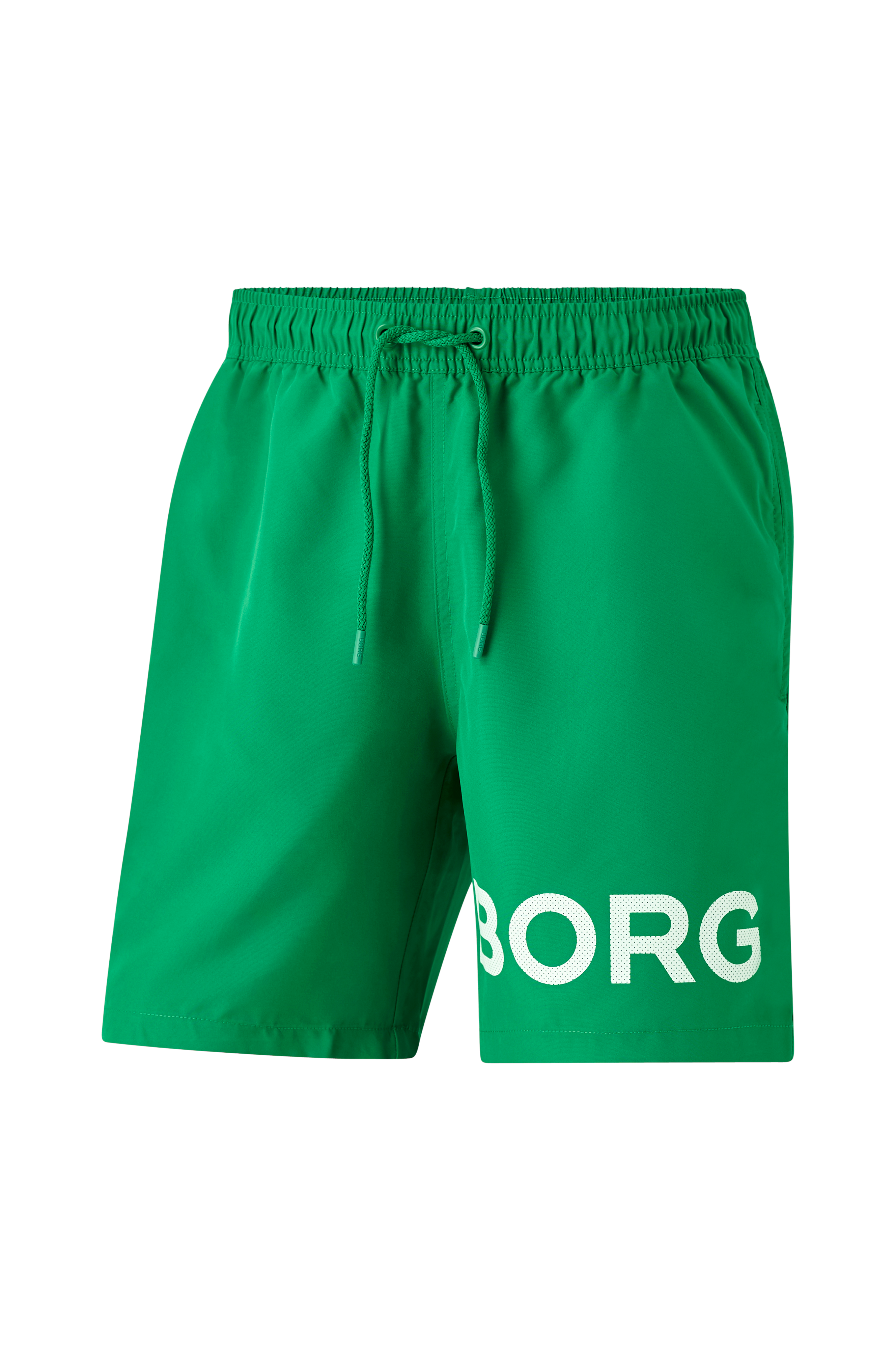 Björn Borg Sheldon Sheldon -uimashortsit, joissa verkkokankaiset sisähousut. Joustava vyötärönauha, jossa nyöri. Kaksi avointa sivutaskua yksi tarranauhallinen takatasku. Borg-painatus toisessa lahkeessa.