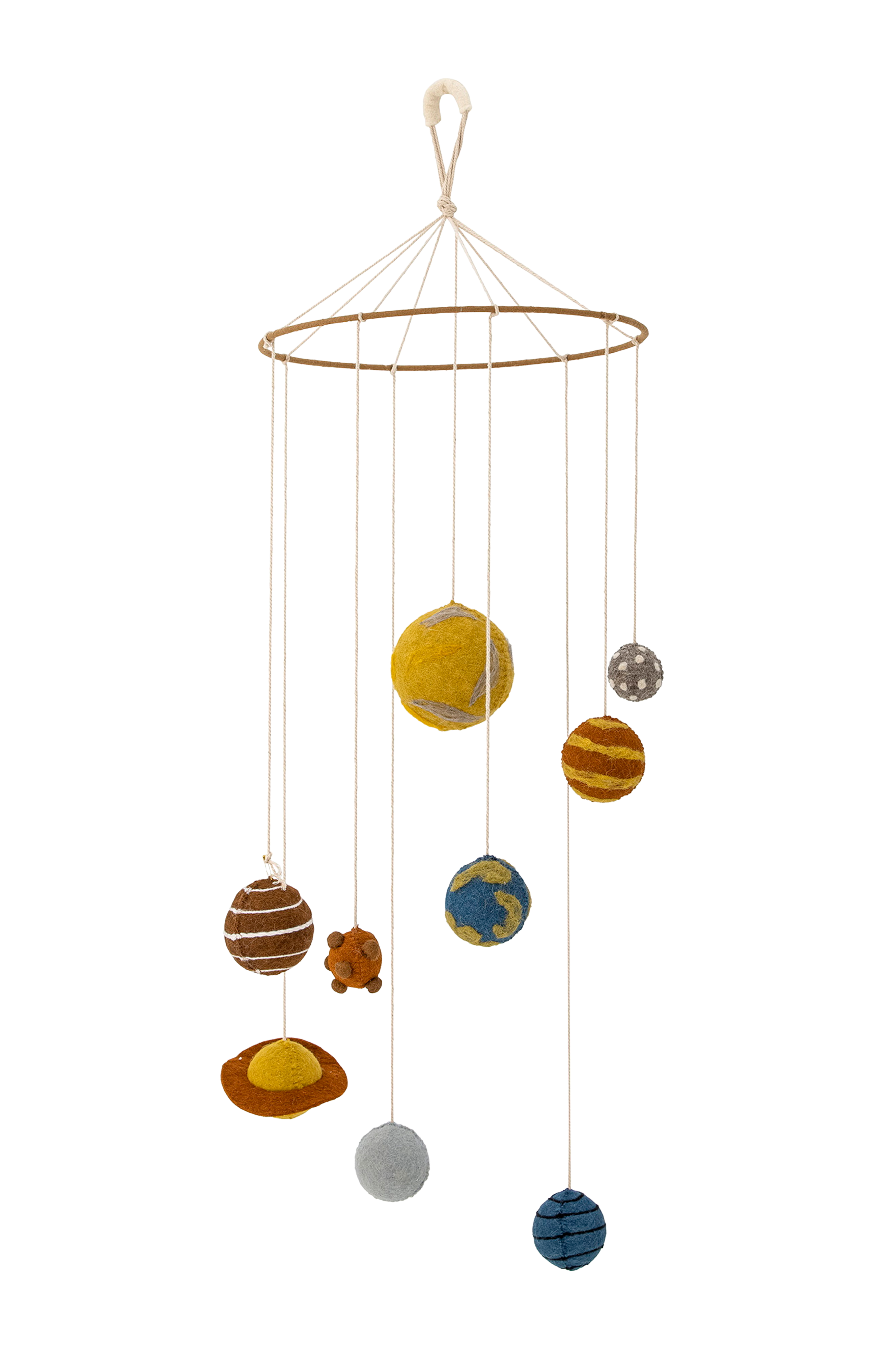 Bloomingville minin space -mobiili on valmistettu villasta, ja se kuvaa kiehtovaa aurinkokuntaamme. Tämän mobilen avulla lapset voivat tutustua planeettoihin sekä hauskalla että viihtyisällä tavalla. Täydellinen yhdistelmä oppimista ja koristelua! D30xh90 cm