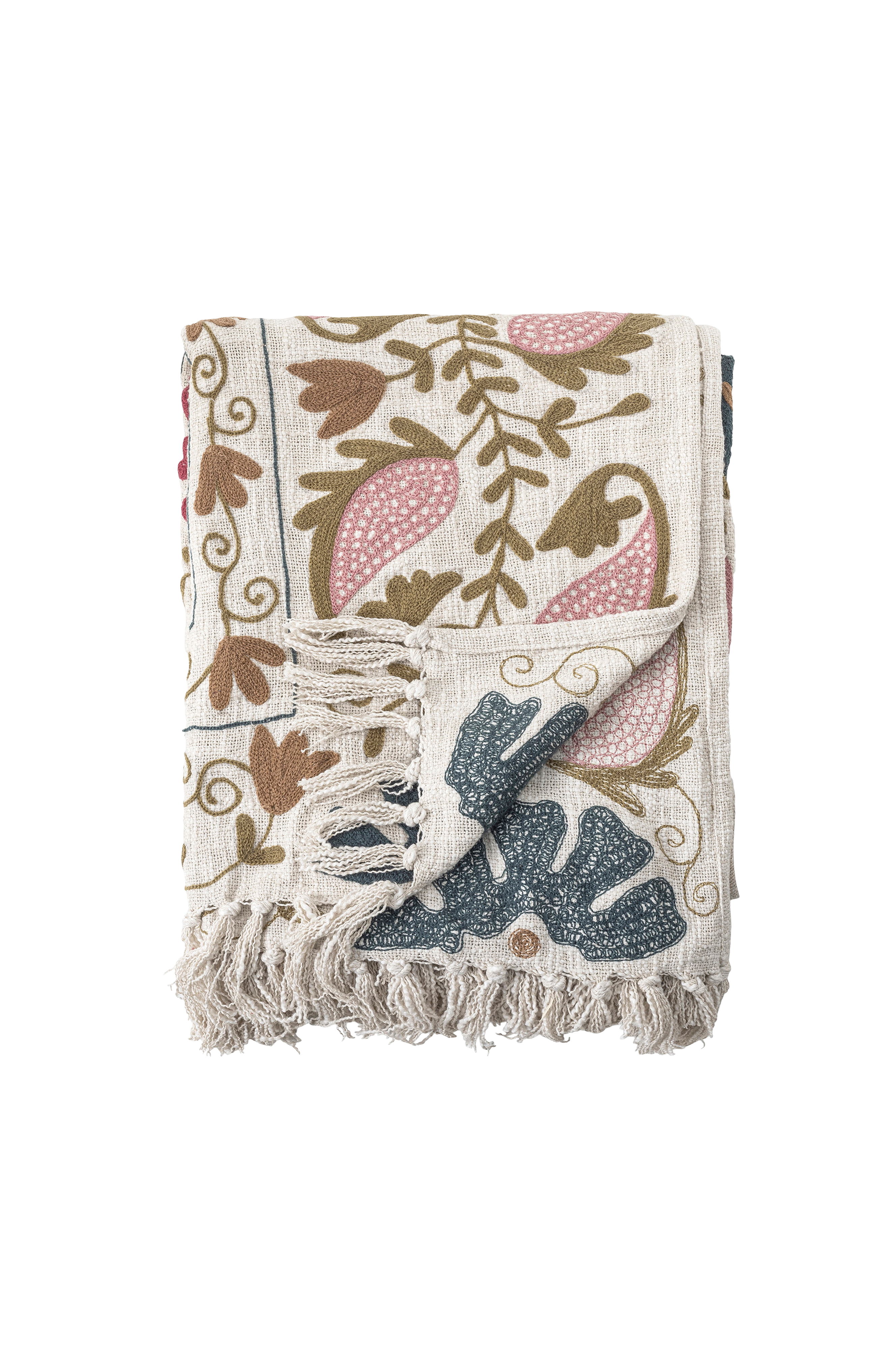 Bloomingvillen ceva -heitto on kauniisti kudottu puuvillaheitto, jossa on yksityiskohtainen kirjailtu kuvio pehmeissä väreissä. Ruskean, vaaleanpunaisen ja sinisen lämpimät sävyt sekä herkkä kuvio tekevät heittopeitosta täydellisen kodikkaan tunnelman luomiseen mihin tahansa huoneeseen. Mitat: L150xw130 cm