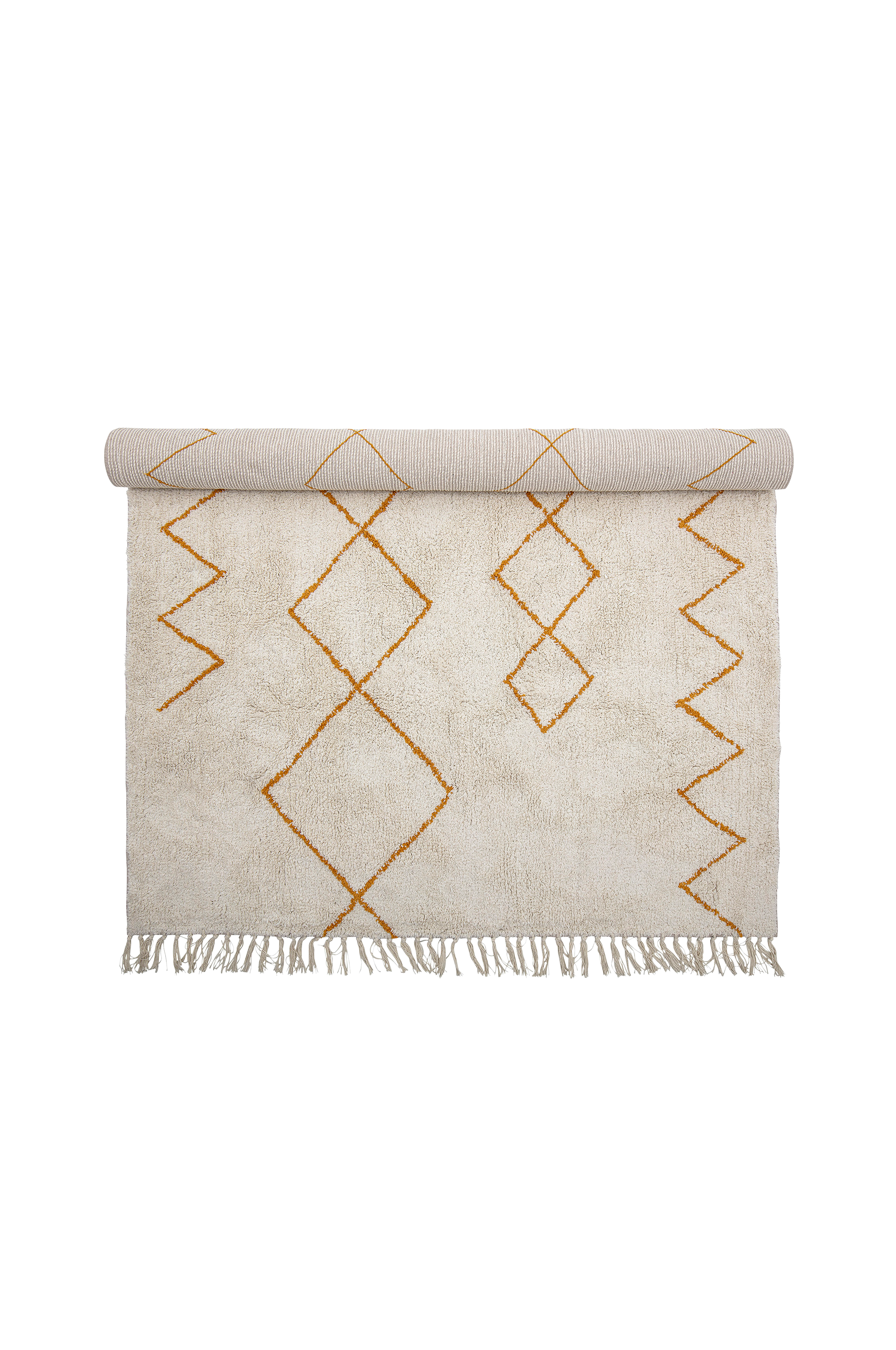 Kudottu ja lankavärjätty matto, jossa trendikäs geometrinen kuvio. Sopii täydellisesti sohvan viereen, pöydän alle tai mihin tahansa.