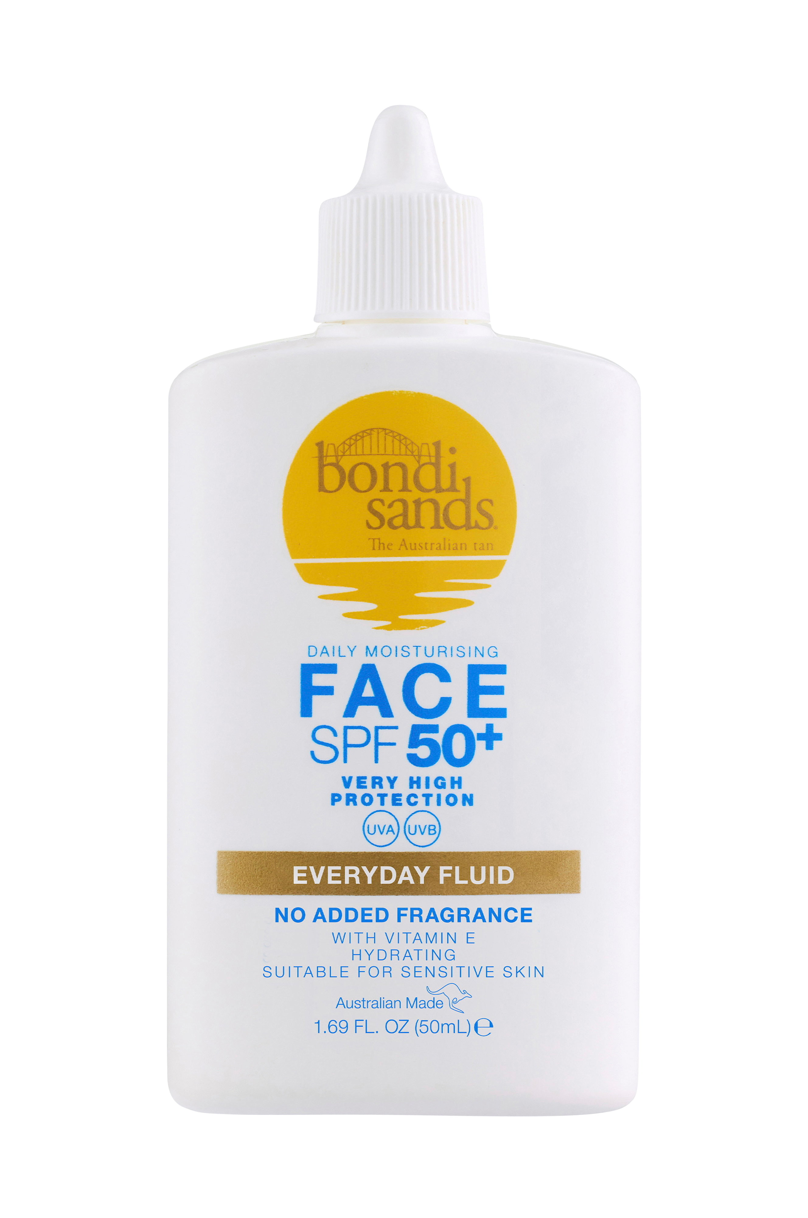 Nauti auringossa paistattelevasta päivästä Bondi Sandsin tapaan hajusteettomalla Spf 50+ -kasvovoiteella. Tämä erittäin kevyt kasvovesi tarjoaa suojaa Uva ja Uvb. Se on hellävarainen, imeytyy nopeasti ja kuivuu näkymättömäksi. Voidaan käyttää yksinään tai meikin alla. Dermatologisesti testattu. Sopii herkälle iholle. Ei komedogeeninen - ei tuki ihohuokosia.