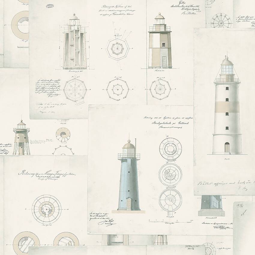 Lighthouse on ainutlaatuinen tapetti, joka on luotu ruotsalaisia majakoita esittävistä kansallisarkiston piirustuksista. Tapetissa on mm. Grimskärin majakka (Kalmarsund), Morups Tången majakka (Halland), Stenkyrkehusin majakka (Gotlanti) ja Skagsin majakka (Gråklubben). Rullan pituus 10,05 m. Leveys 53 cm. Kuvion kohdistus 53 cm, vuorokohdistus. Painettu Ruotsissa non-woven-materiaalille. Tapetilla on easyup-merkintä, eli liima levitetään suoraan seinään eikä seinää tarvitse maalata ennen tapetointia.