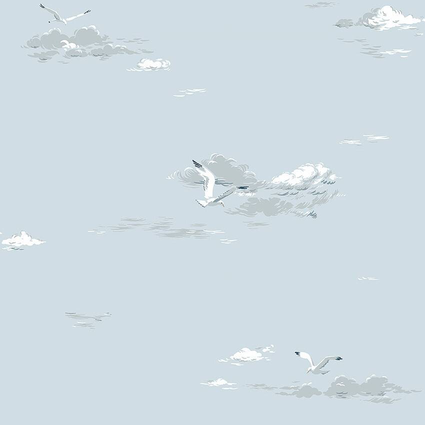 Seagulls-tapetissa on rauhoittava kuvio, jossa on lokkeja ja ohuita pilviä. Rullan pituus 10,05 m. Leveys 53 cm. Kuvion kohdistus 53 cm, vuorokohdistus. Painettu Ruotsissa non-woven-materiaalille. Tapetilla on easyup-merkintä, eli liima levitetään suoraan seinään eikä seinää tarvitse maalata ennen tapetointia.
