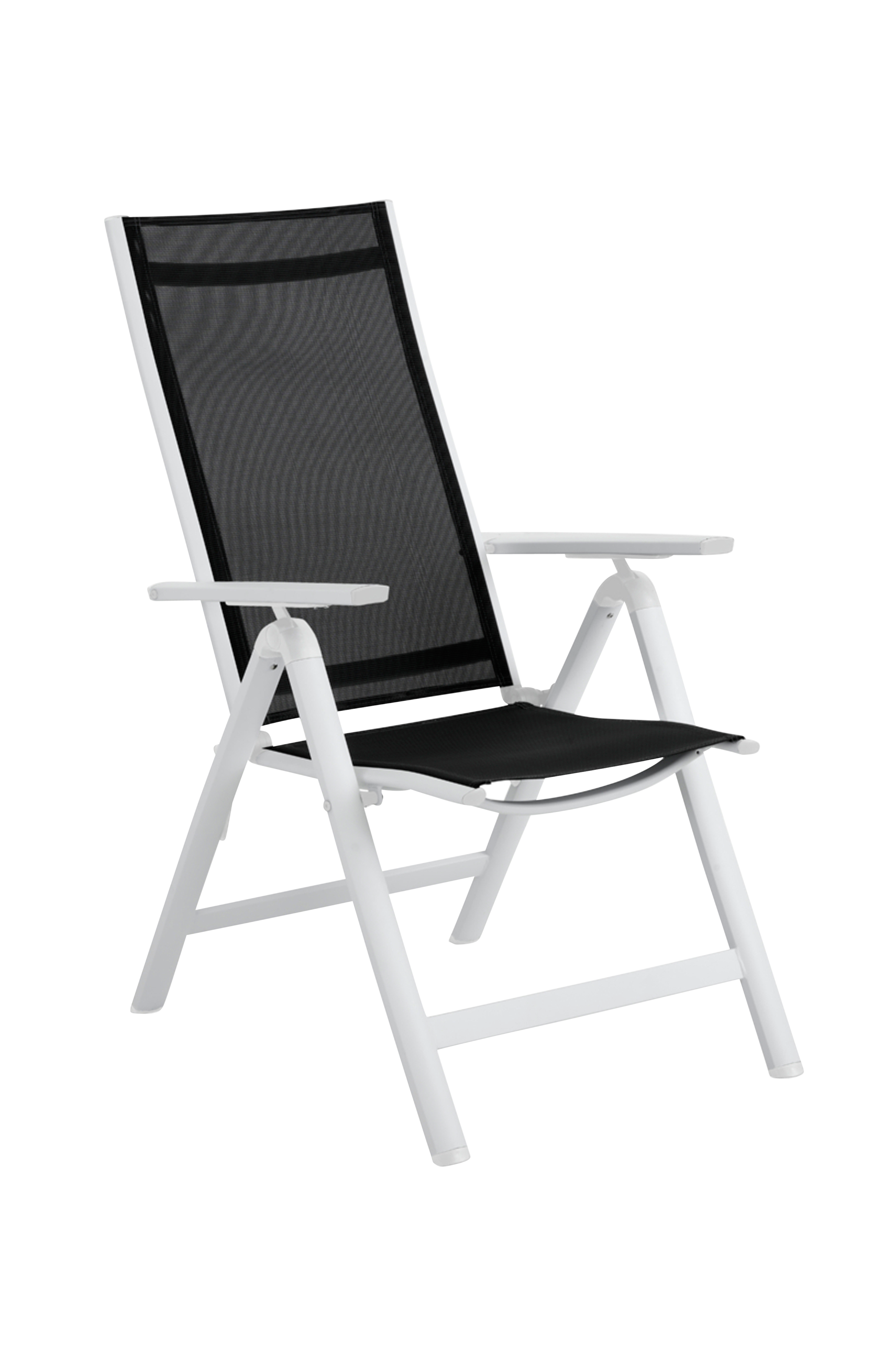 Rana-säätötuoli jauhemaalattua alumiinia ja antrasiitinväristä textilene-kangasta. 6 aseteen säädettävä selkänoja.