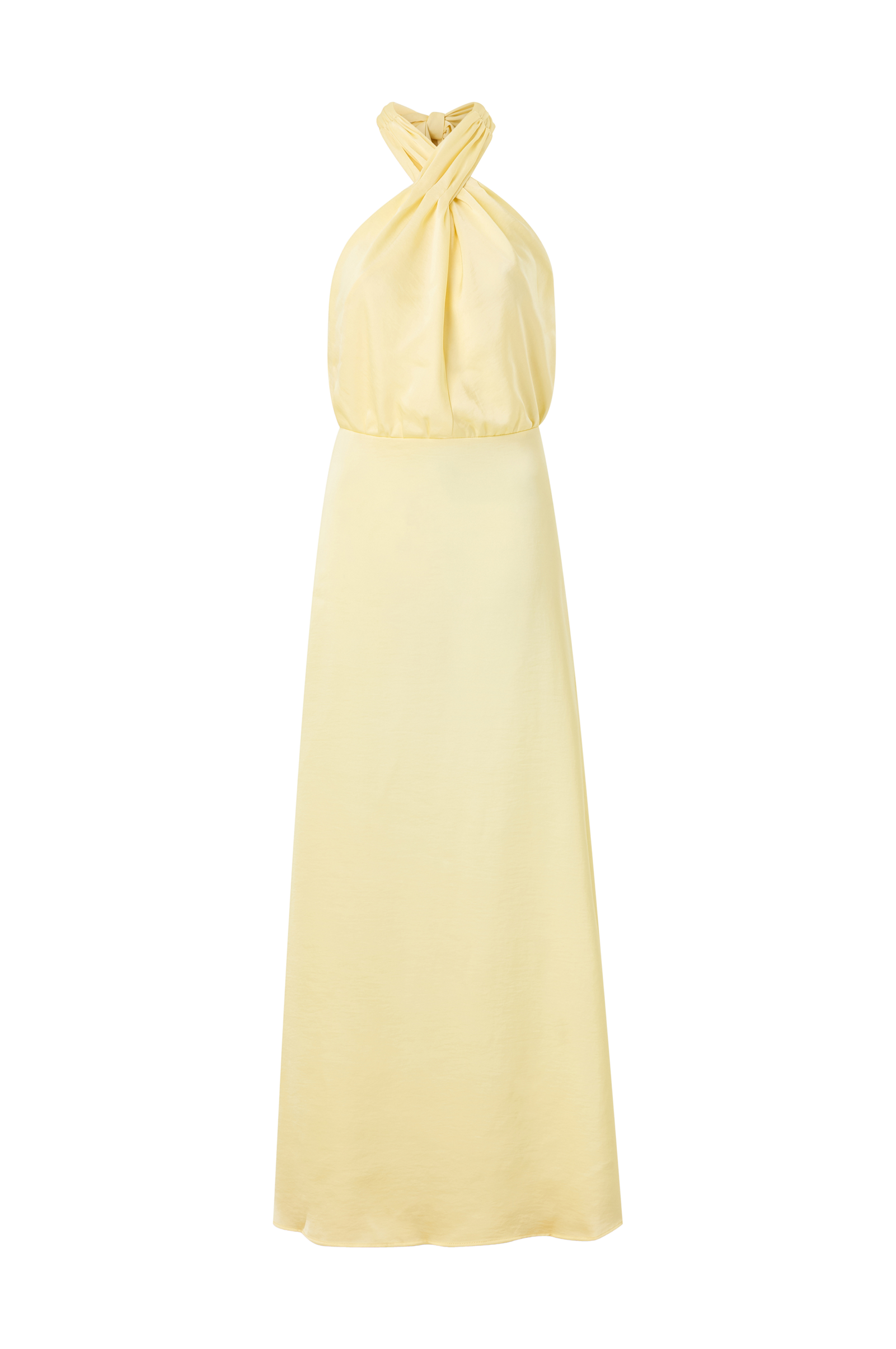 • Pitkä mekko satiinista halterneck-mallilla• Avonainen selkä• Piilotettu takavetoketju• Tekstiilivuori ylhäällä edessä• Pituus: 152 cm koossa 36