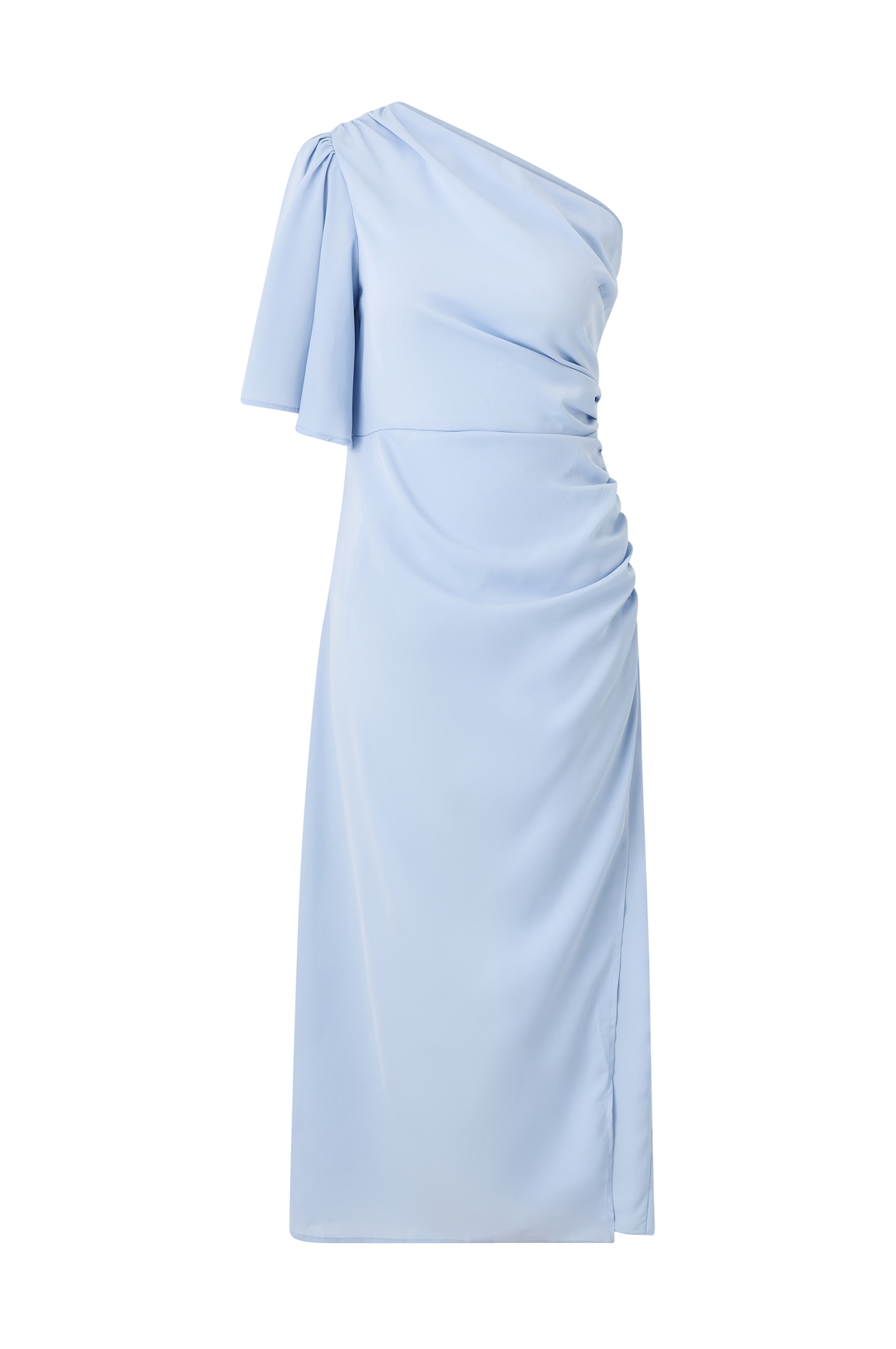 • Pitkä, one-shoulder mekko satiinista• Yksi lyhyt, leveä puhvihiha• Kätketty vetoketju toisella puolella• Korkea halkio alhaalla• Pituus: 130 cm koossa 36