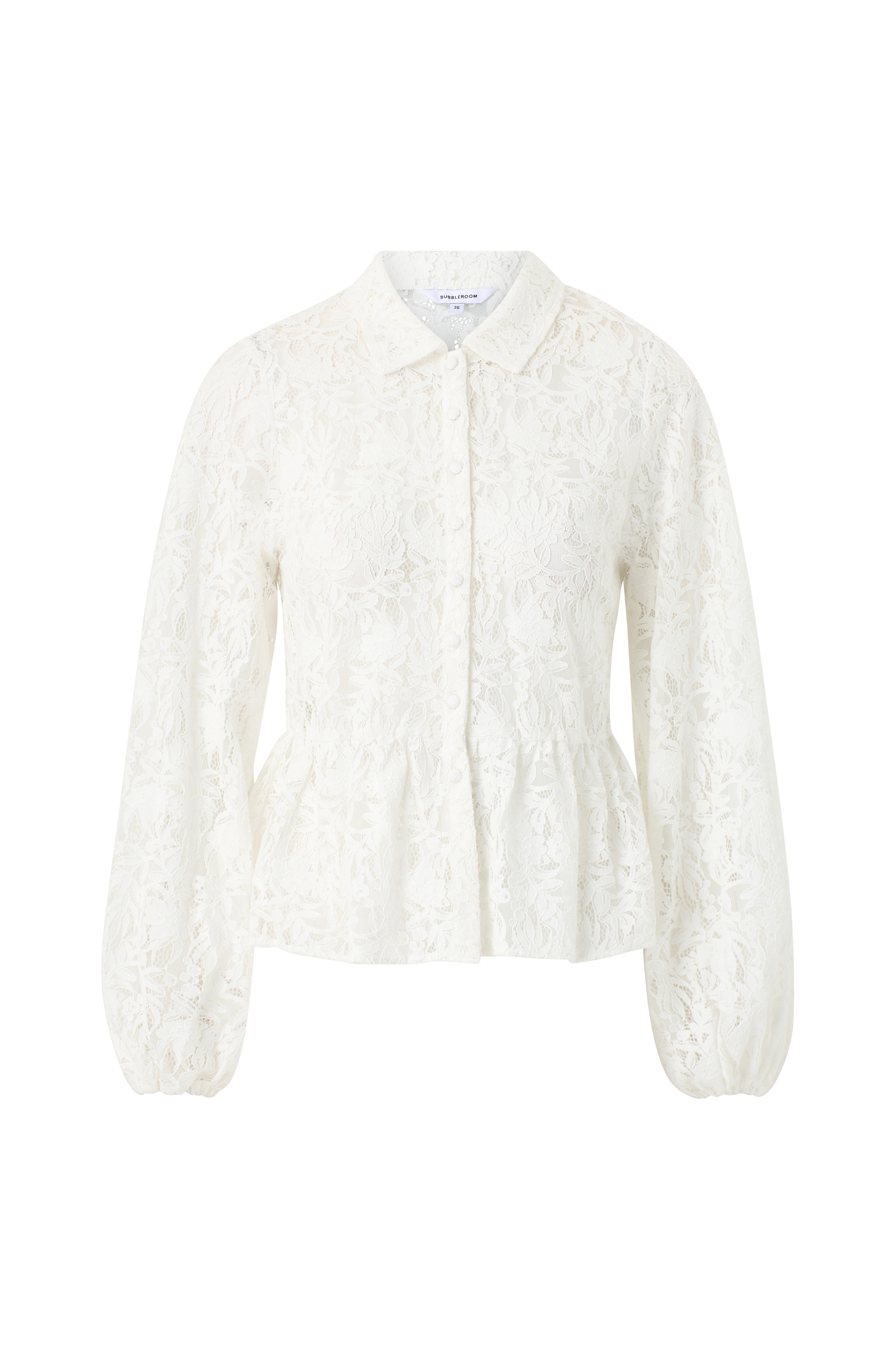• Läpinäkyvä pusero pitsistä• Peplum-malli• Päällystetyt napit edessä• Leveät pallohihat elastisilla hihansuilla